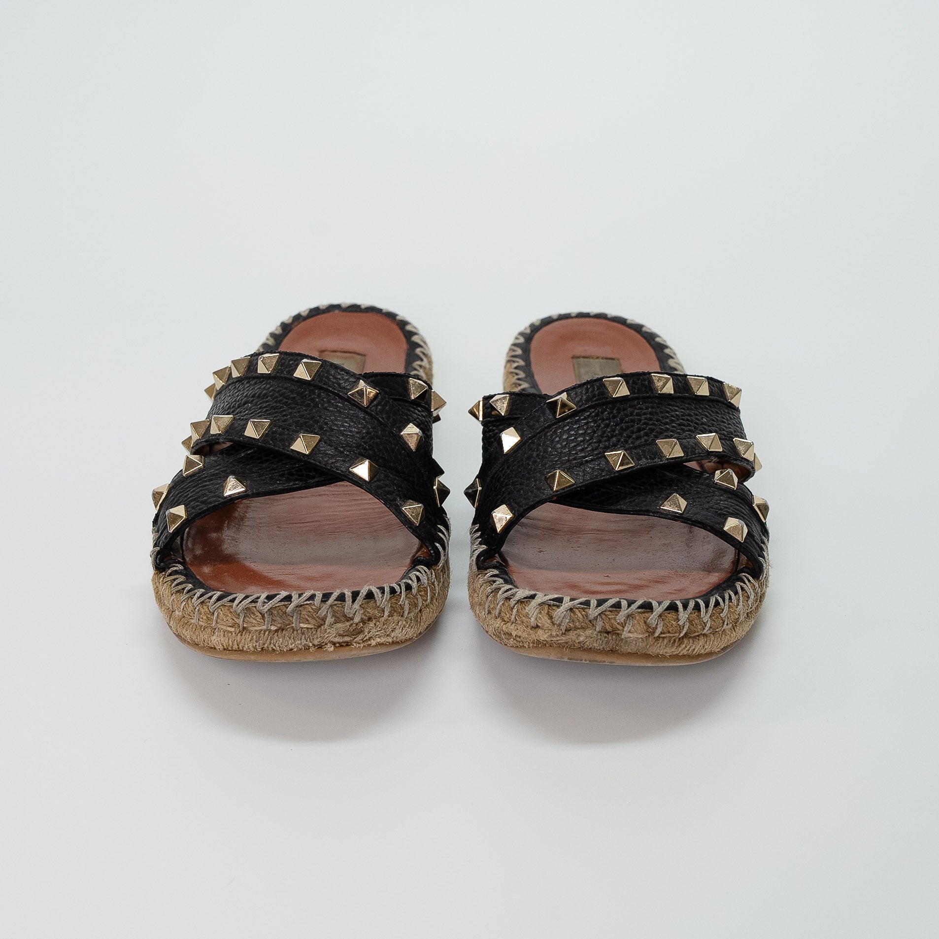 Valentino Garavani Rockstud Black Criss Cross Espadrille Sandals