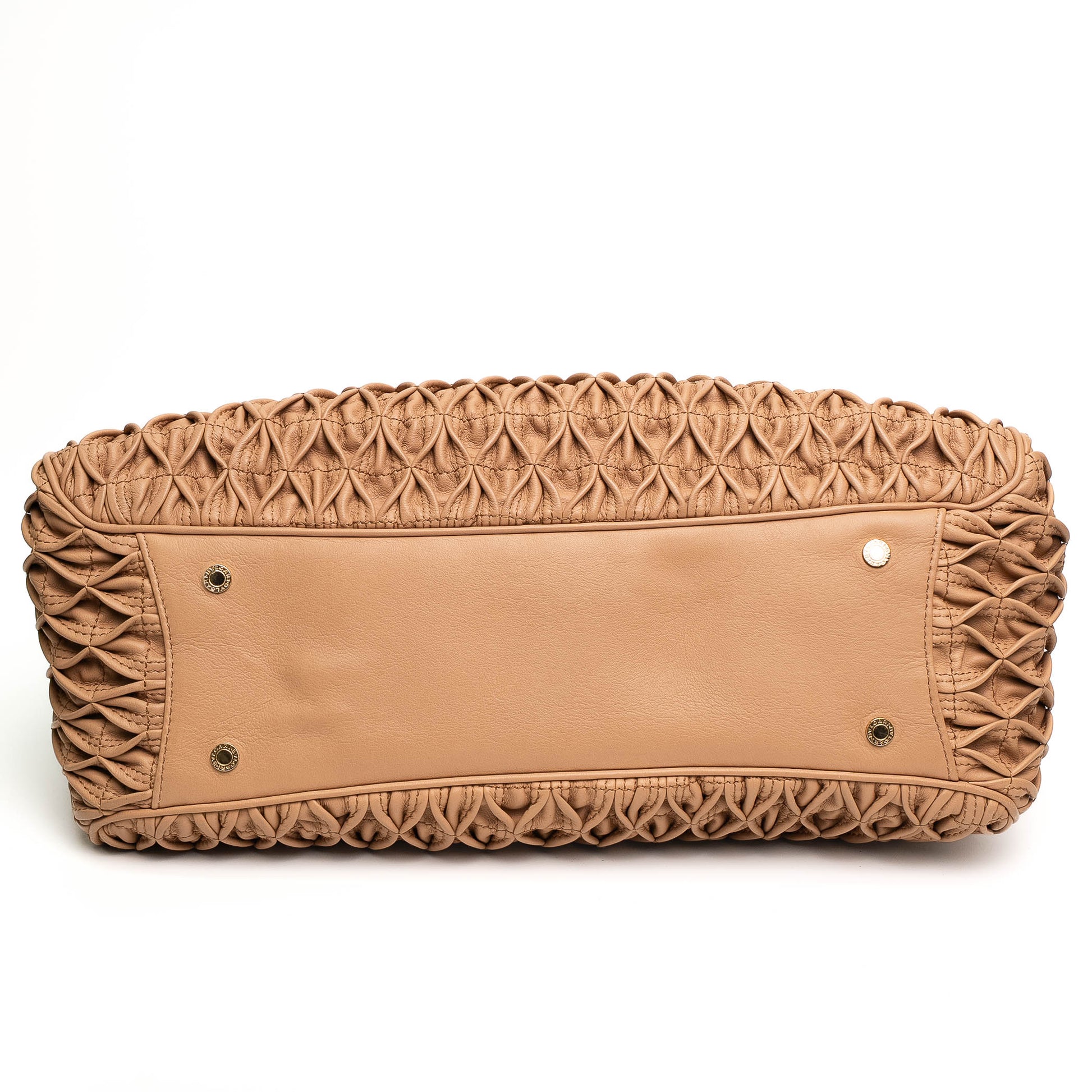 Bvlgari Willow Beige Pleated Leather Drawstring Tote Bag
