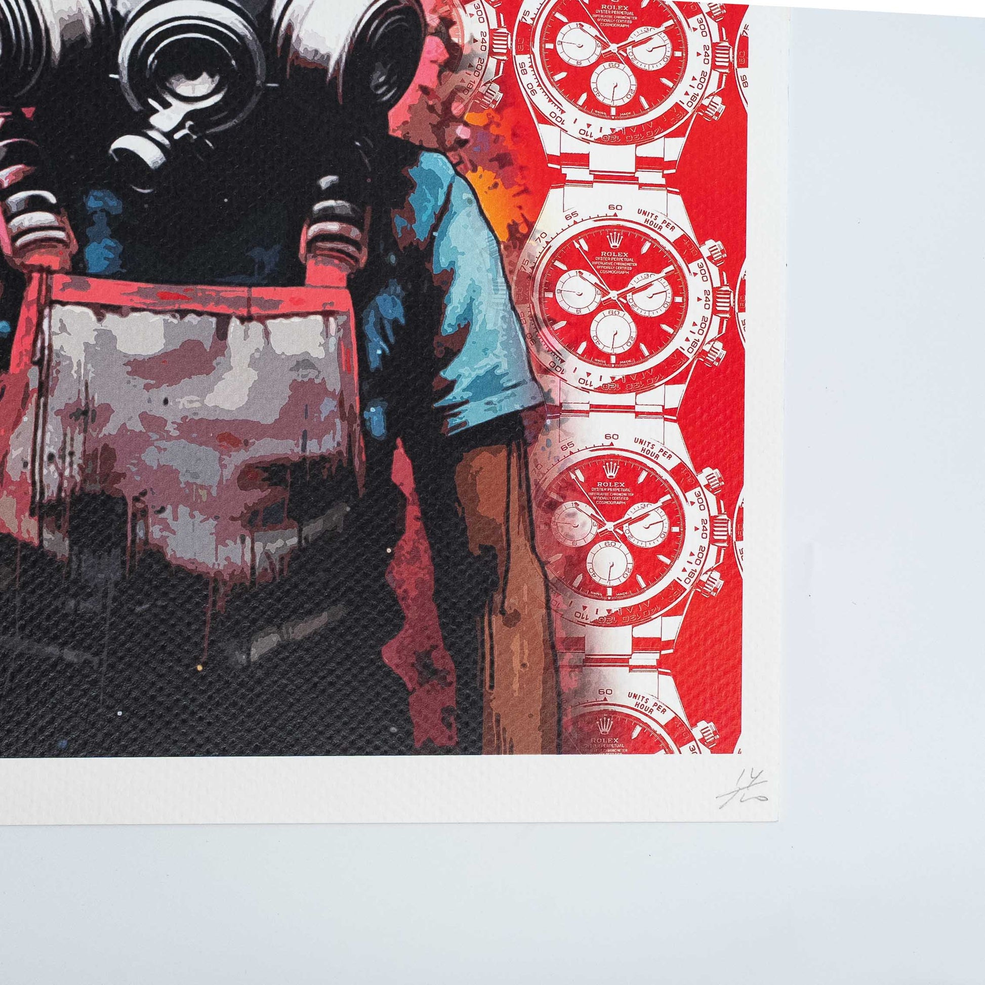 Death NYC Signed Street Art Print, Limited Edition, signed lower left, number 14/110 lower right, 300 mgs fine art paper, embossed watermark lower left in image, image measures 42x30cm, total sheet measures 45 x 32cm. Certificate of authenticity provided by Death NYC.