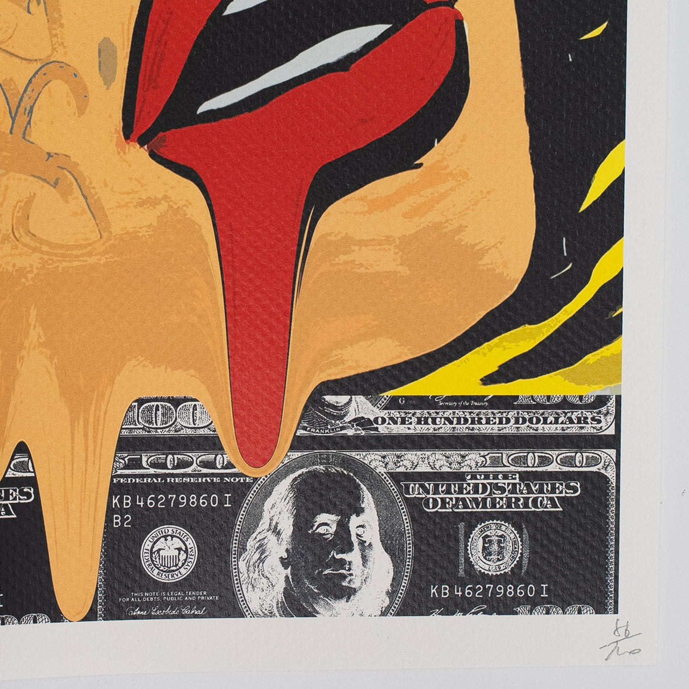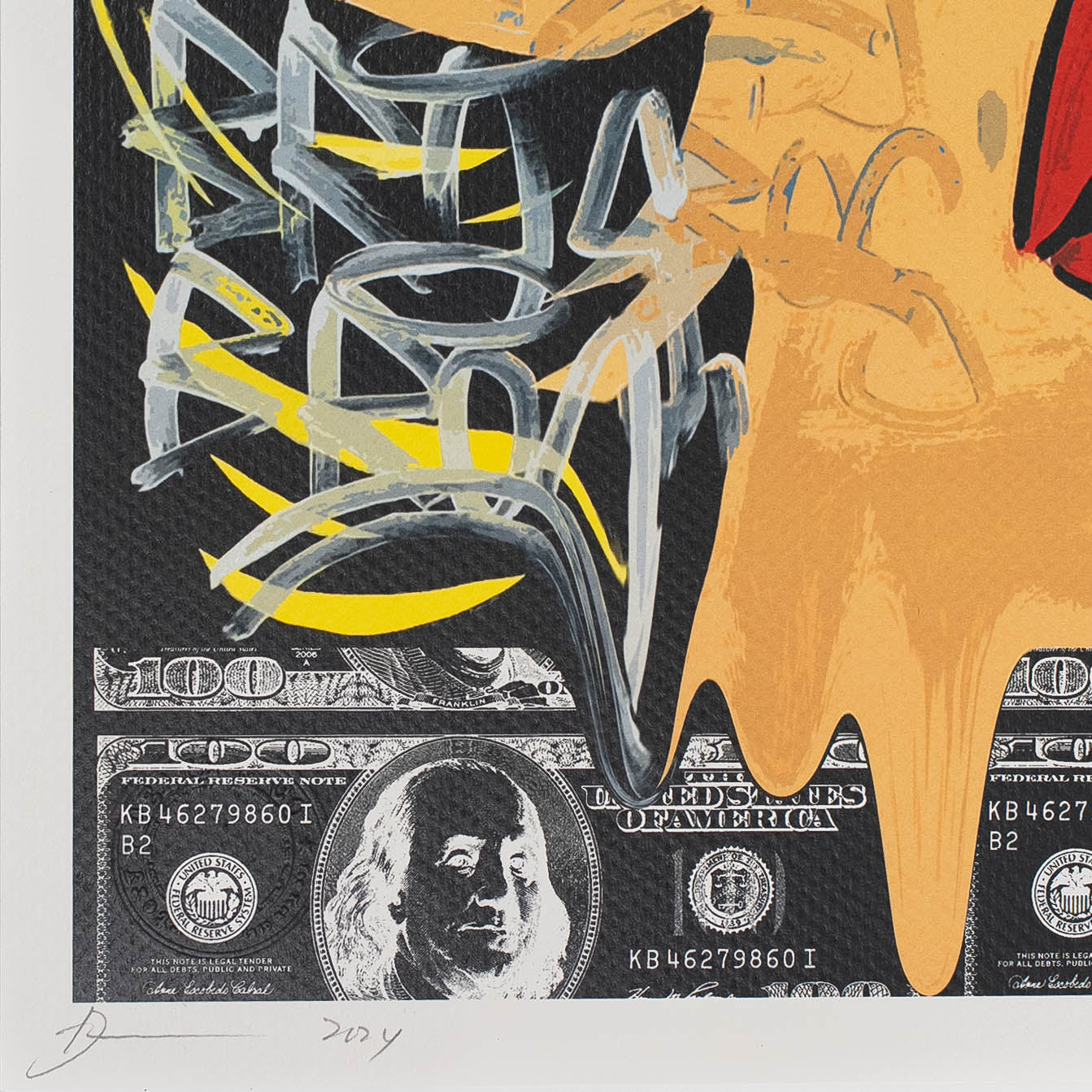 Death NYC Signed Street Art Print, Limited Edition, signed lower left, number 66/110 lower right, 300 mgs fine art paper, embossed watermark lower left in image, image measures 42x30cm, total sheet measures 45 x 32cm. Certificate of authenticity provided by Death NYC.