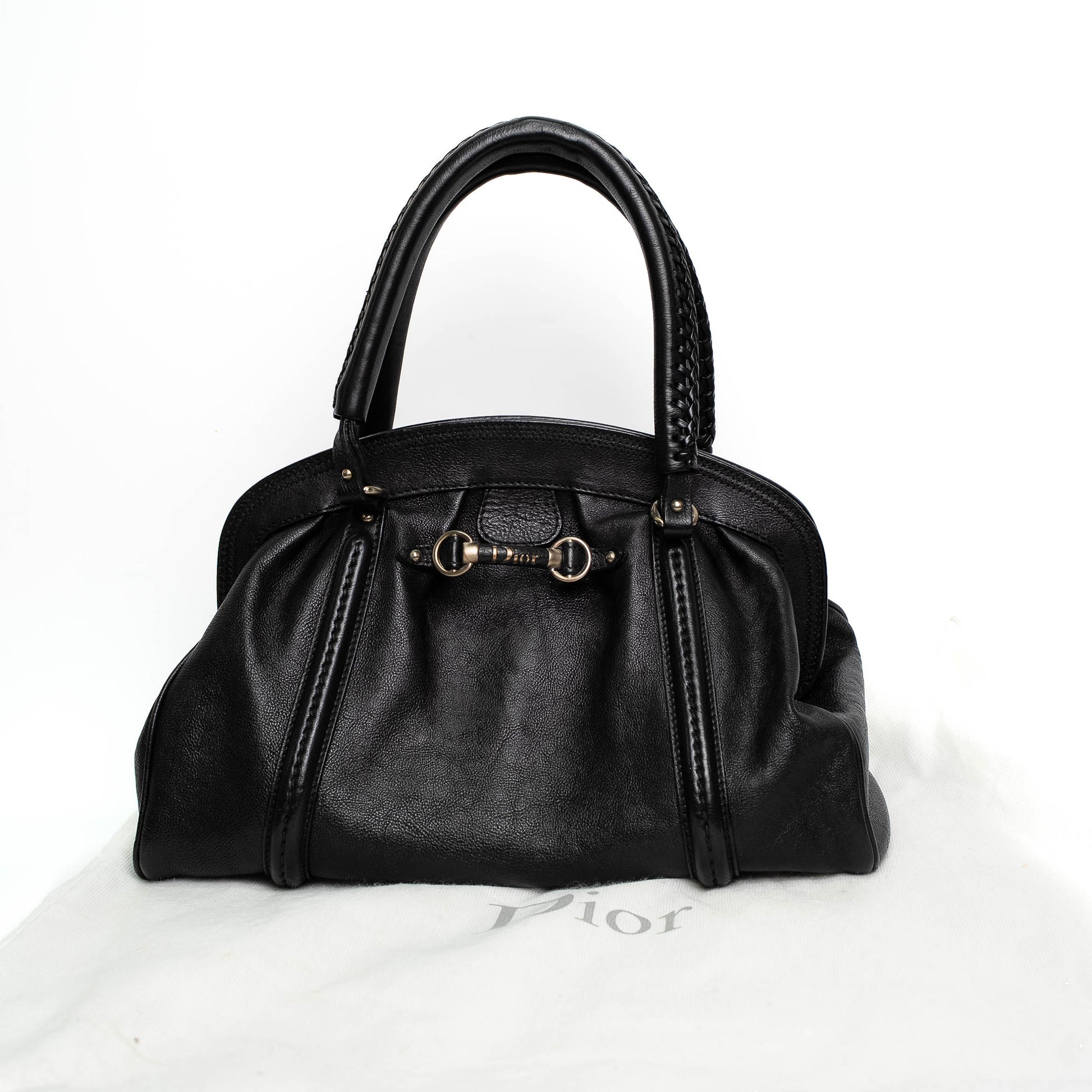 Dior Black Leather Framed Top Handle Shoulder Bag