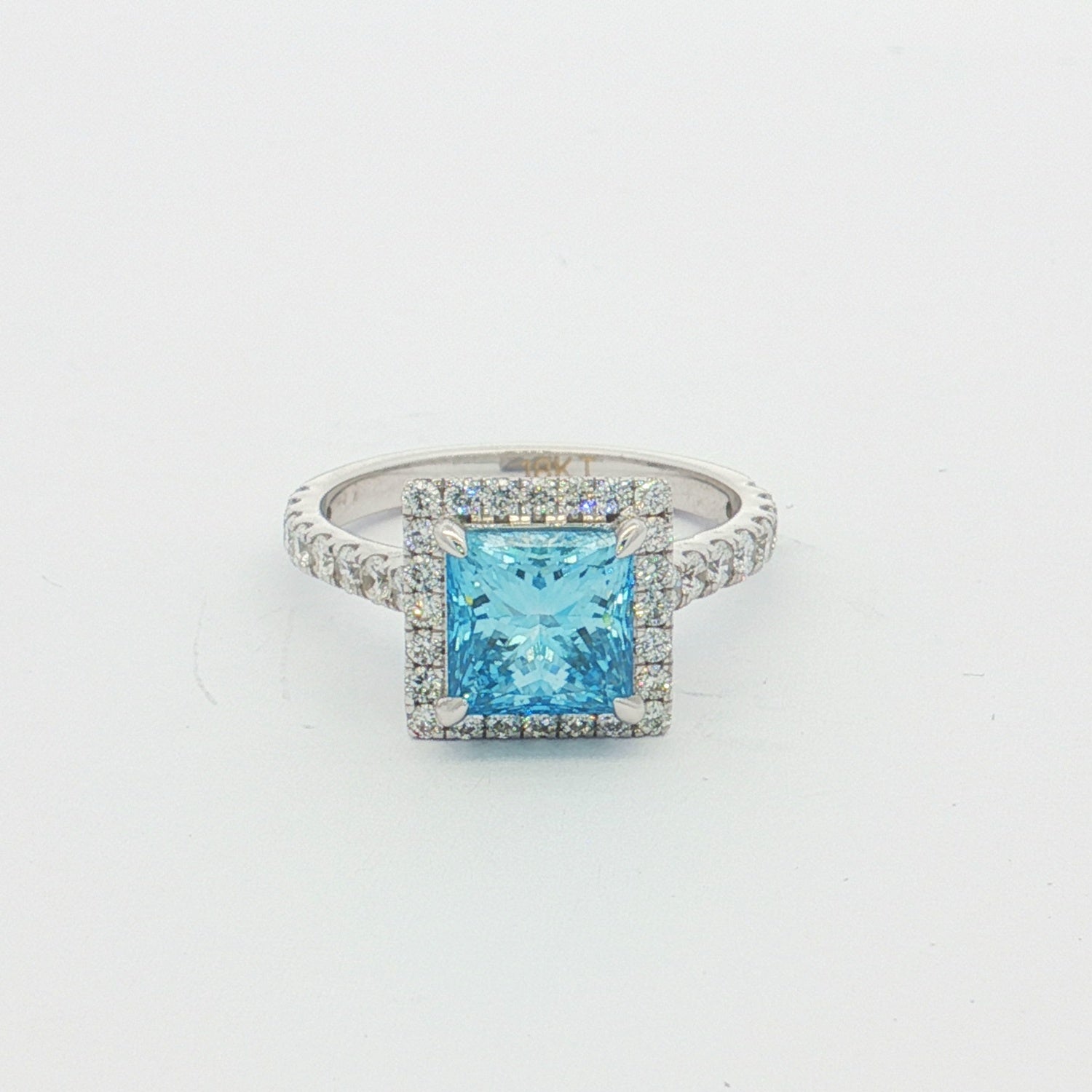 - Centre Diamond: 1 × Princess Cut (Lab-Grown), 7.14 × 7.09 × 5.22 mm, approx. 2.25 ct, Fancy Intense Blue colour, VS2+ clarity