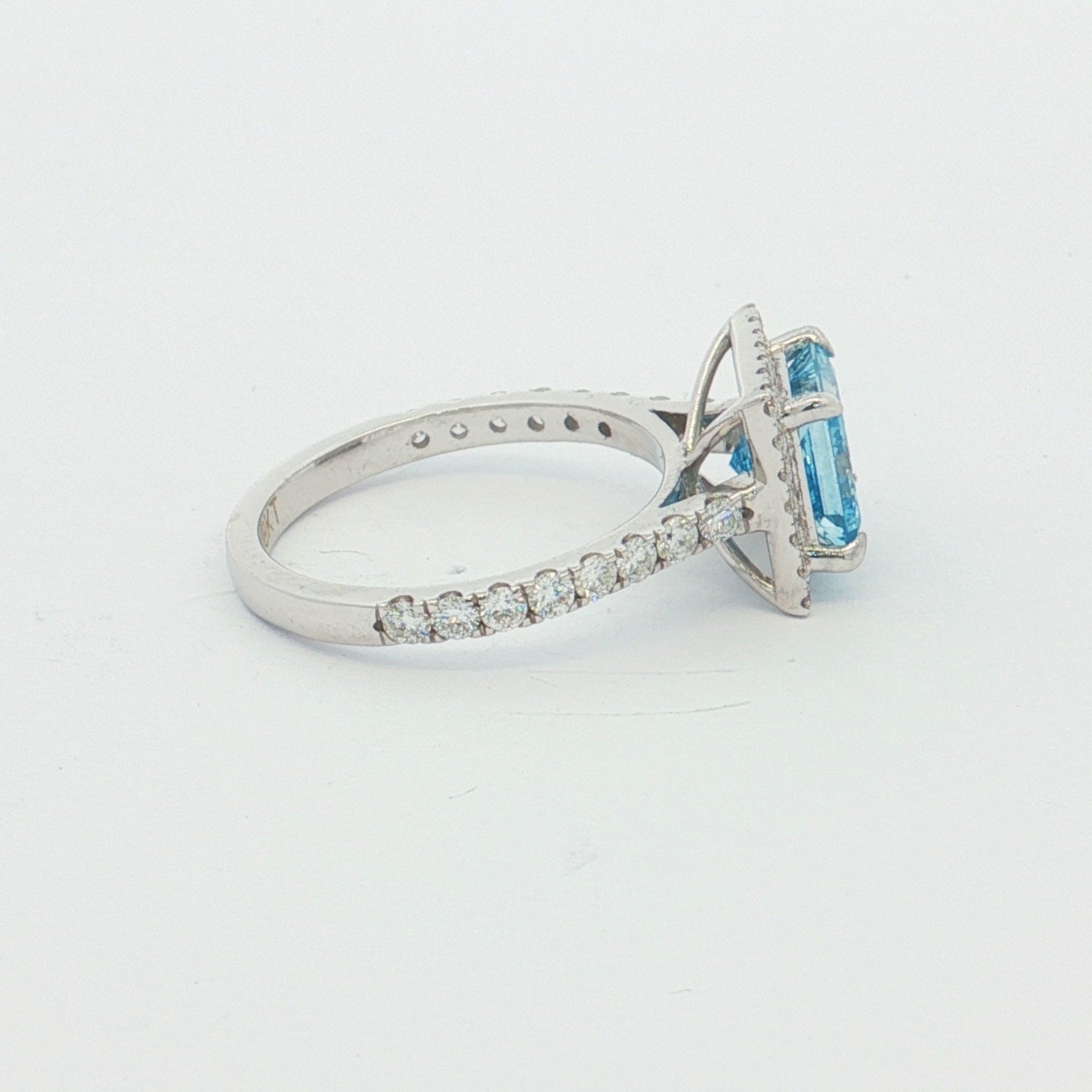 View compareWhite Gold Blue Princess-Cut Halo Ring
