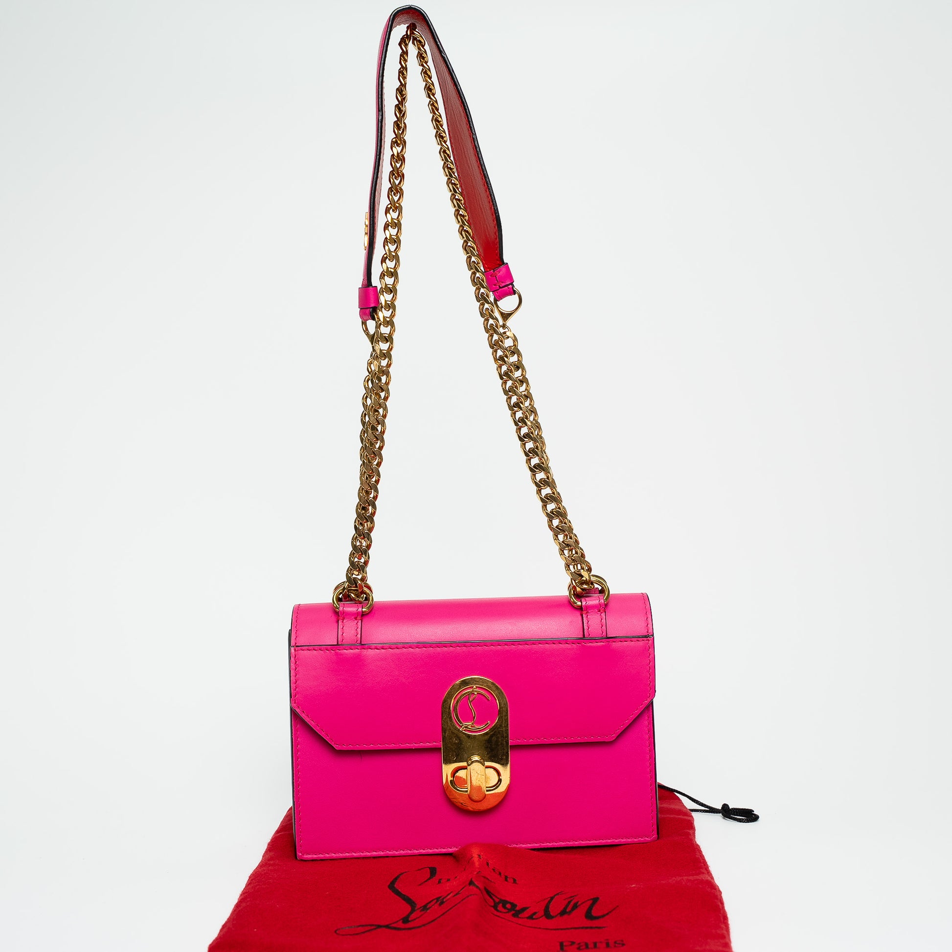 Closure Details: Front flap with signature Louboutin clip lock fastening
