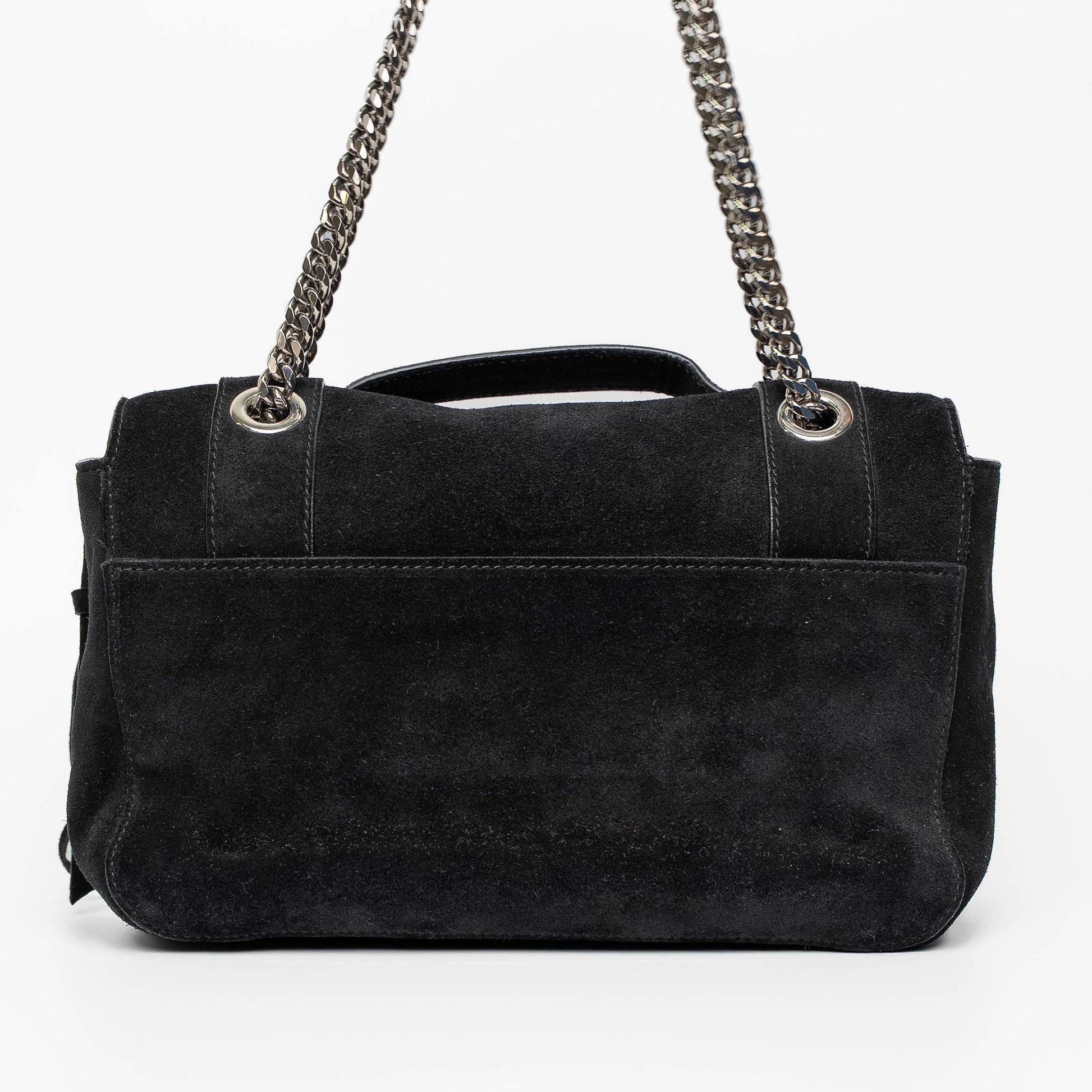 Balmain Paris Black Suede Medallion Chain Shoulder Flap Bag