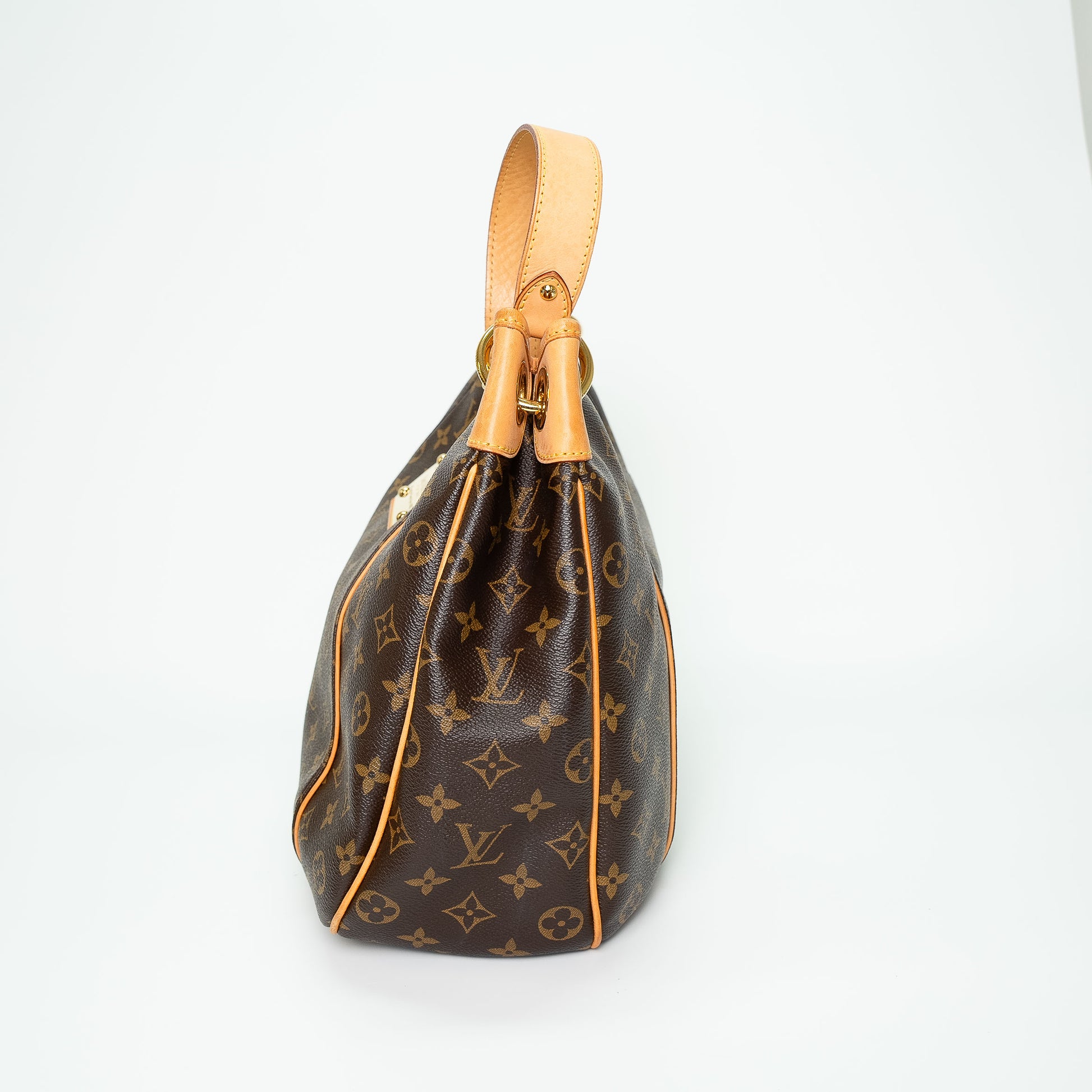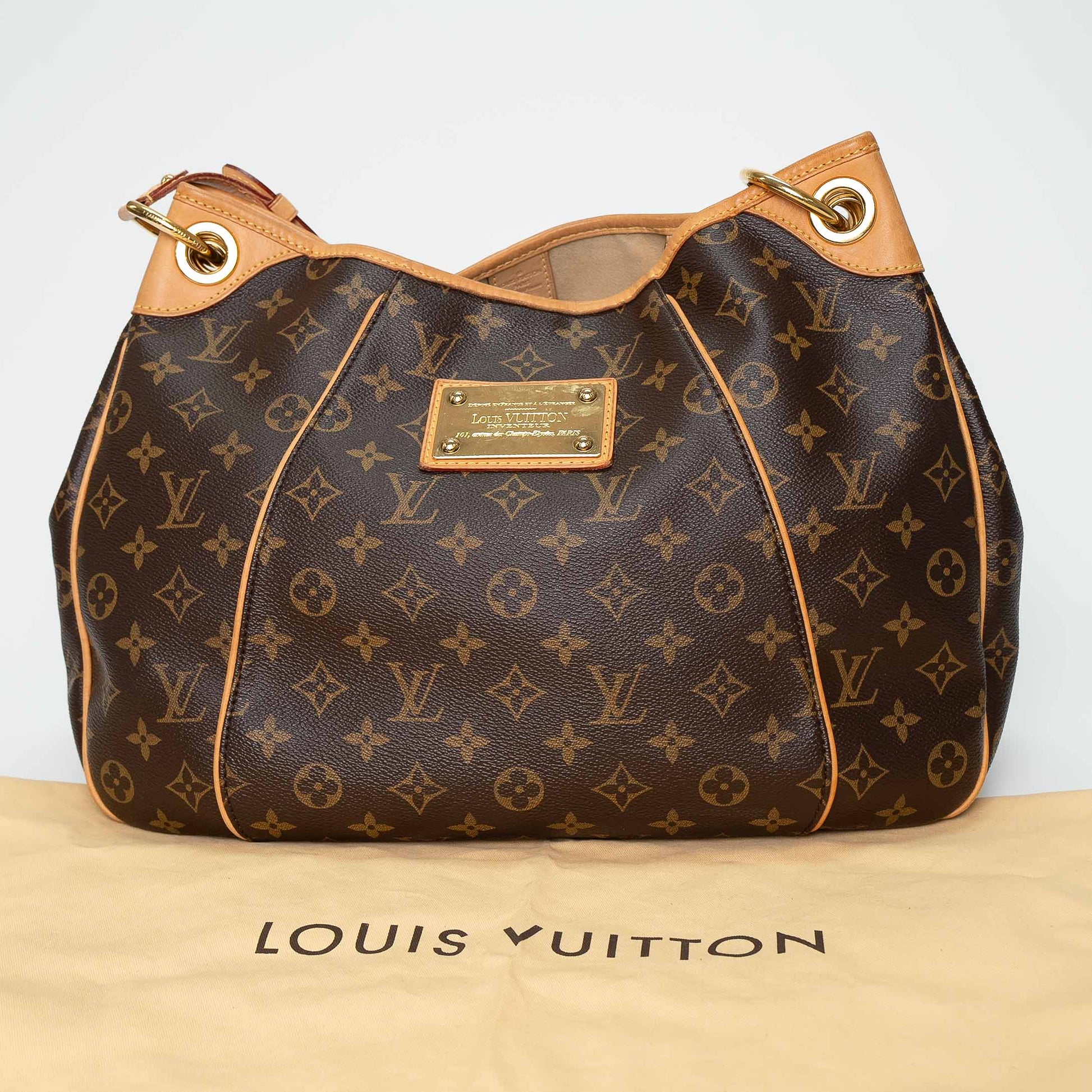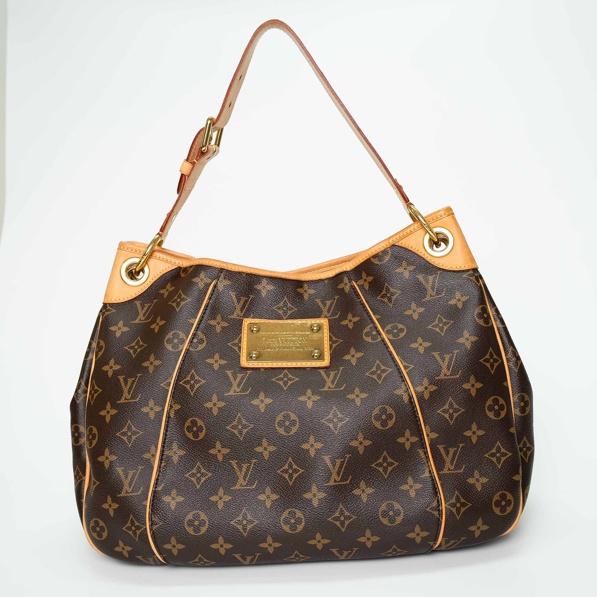 Elegant and structured, the Louis Vuitton Galliera PM in classic Monogram canvas features natural Vachetta leather trim and gold-tone hardware.