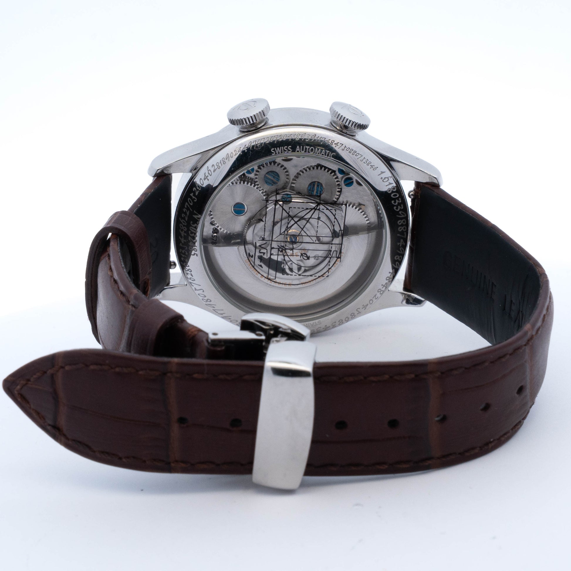 - Dial: Silver & White Dial with baton hour markers, day/date display exhibition back