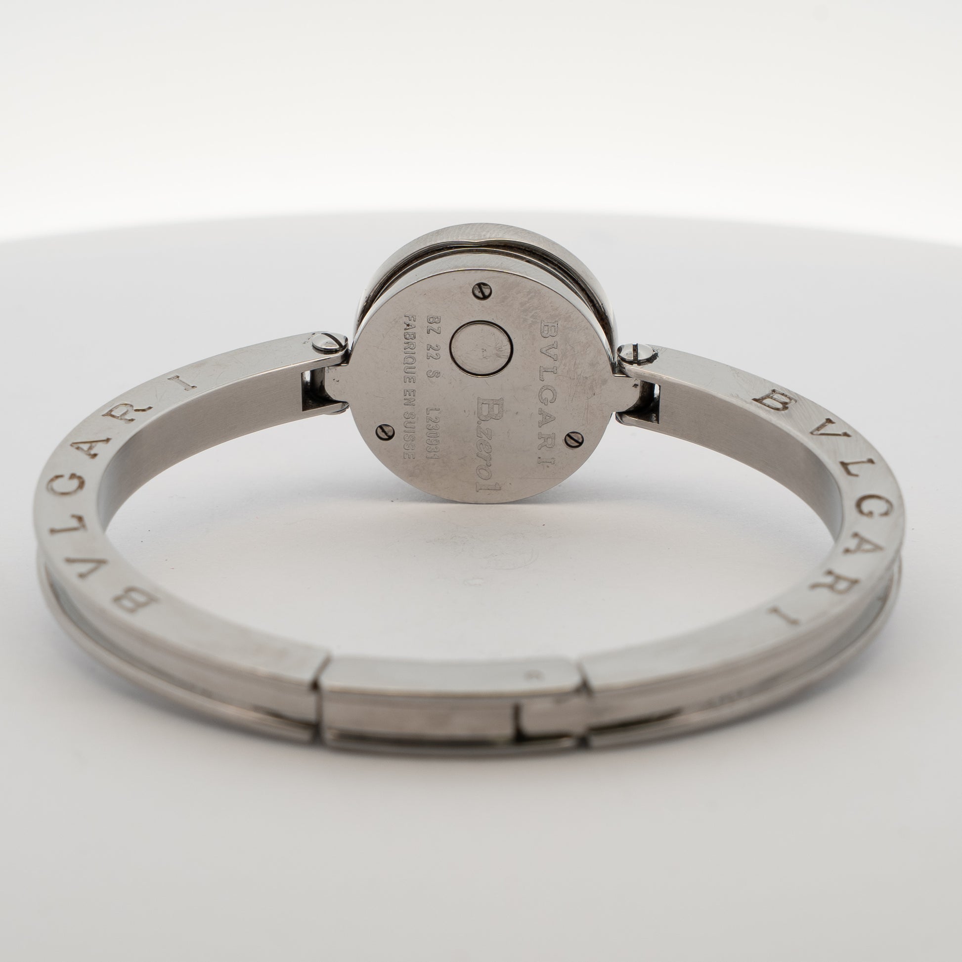 - Case: Polished stainless steel with engraved “BVLGARI BVLGARI” bezel