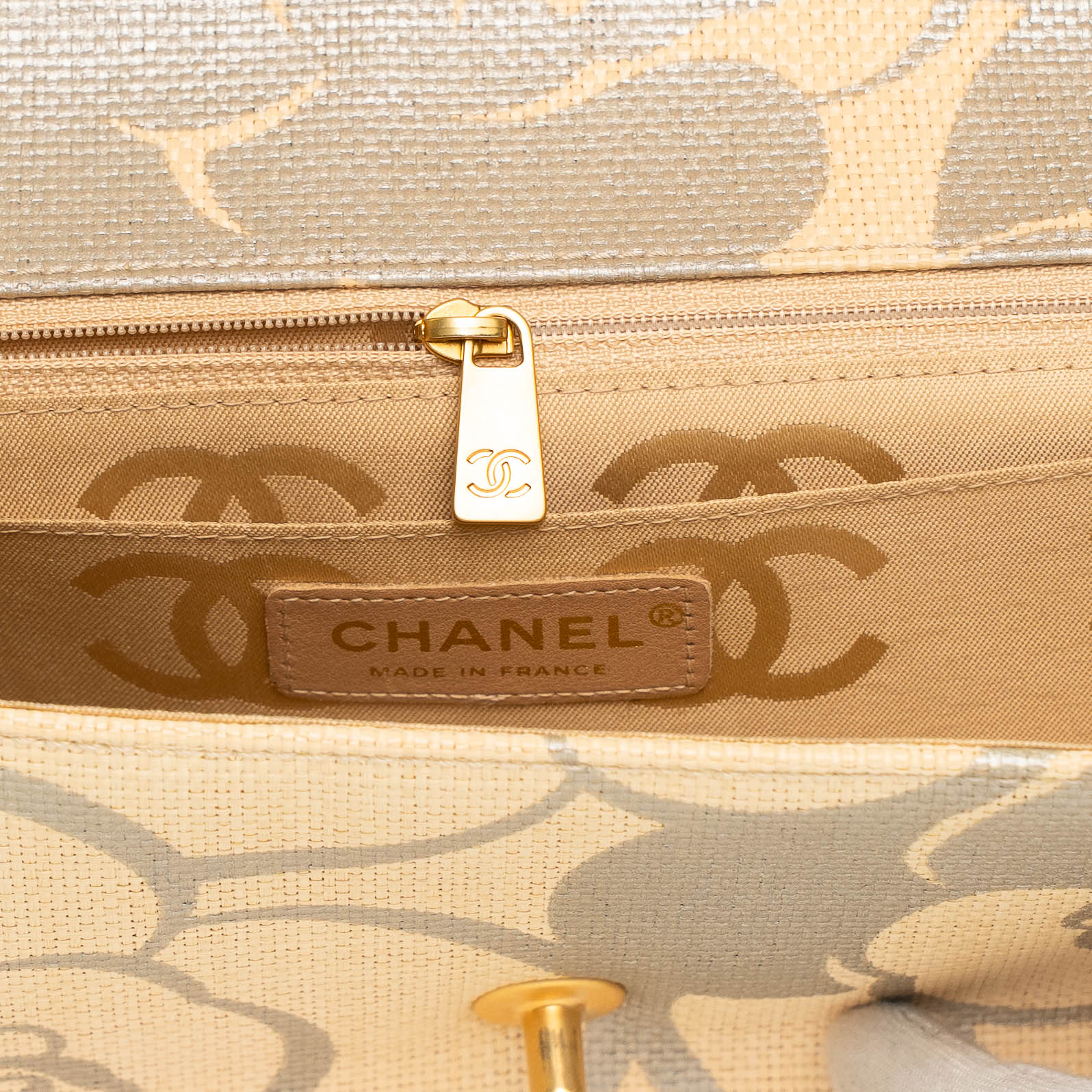 • Interior: Beige fabric lining with Chanel monogram pattern