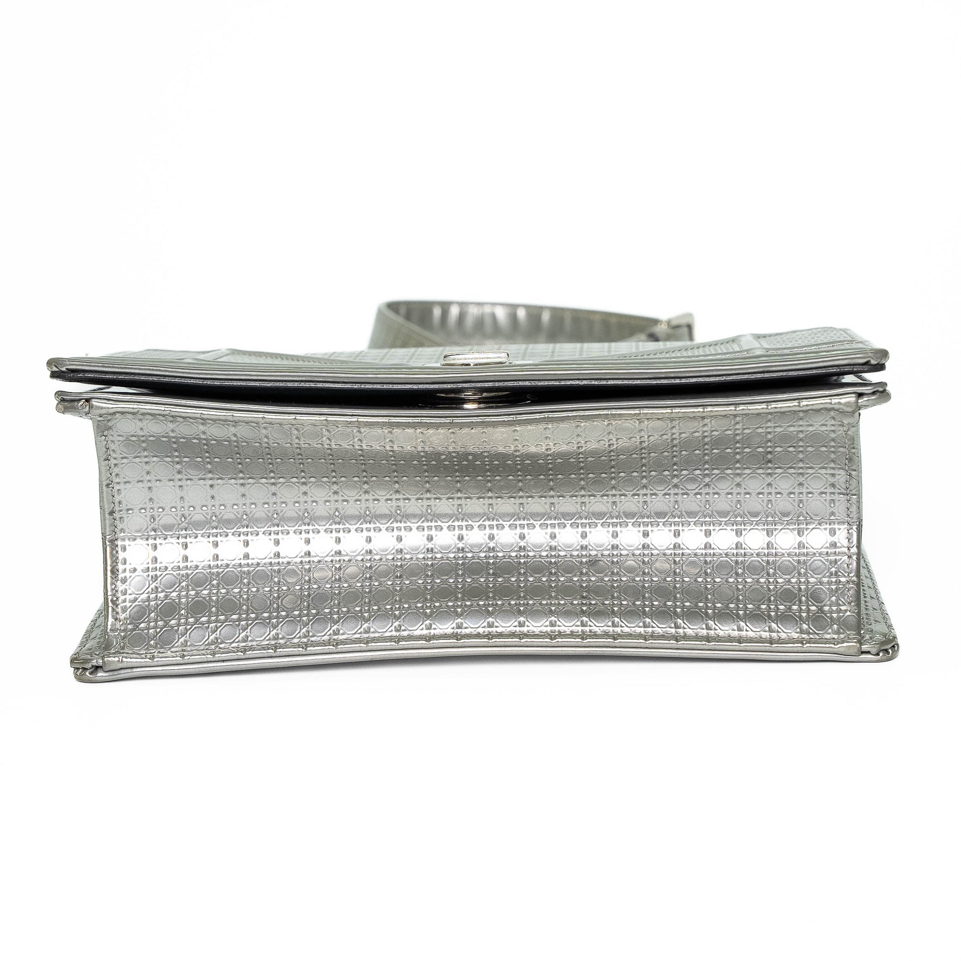 This Christian Dior Diorama Shoulder Bag in metallic silver grained leather is an architectural statement piece with modern allure.