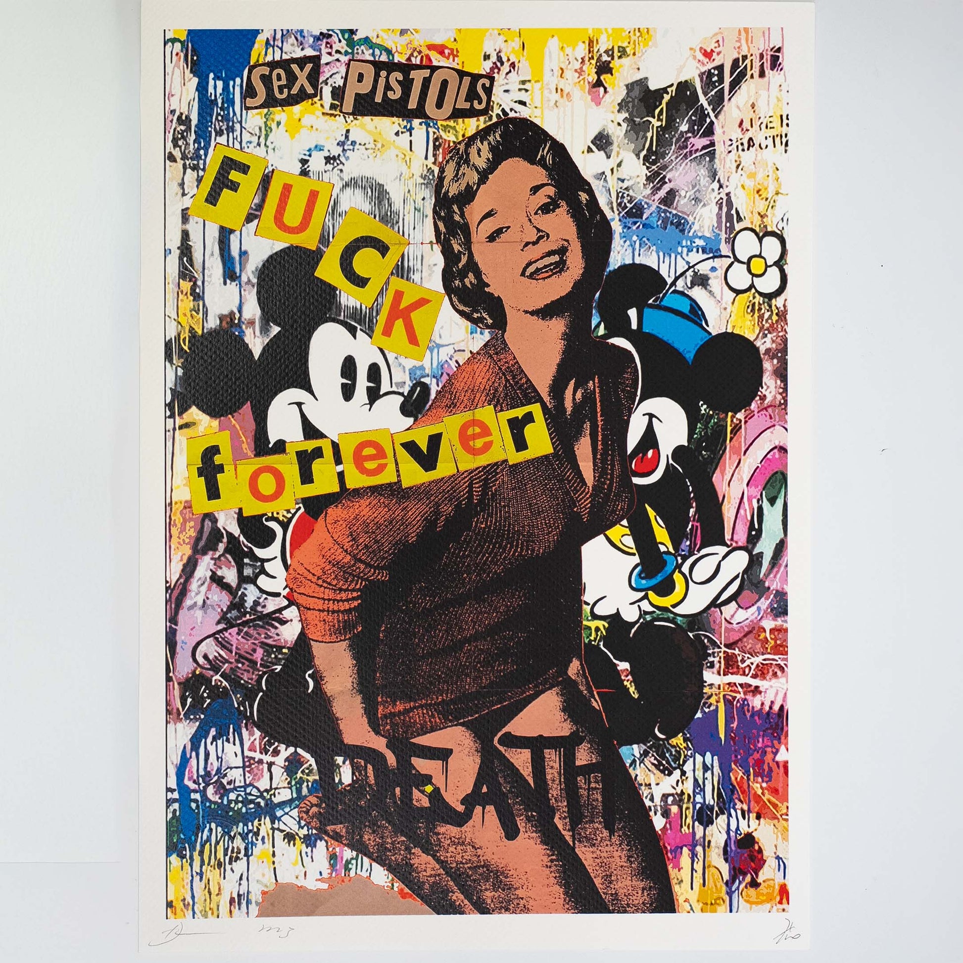 Death NYC Signed Street Art Print, Limited Edition, signed lower left, number 71/110 lower right, 300 mgs fine art paper, embossed watermark lower left in image, image measures 42x30cm, total sheet measures 45 x 32cm. Certificate of authenticity provided by Death NYC.