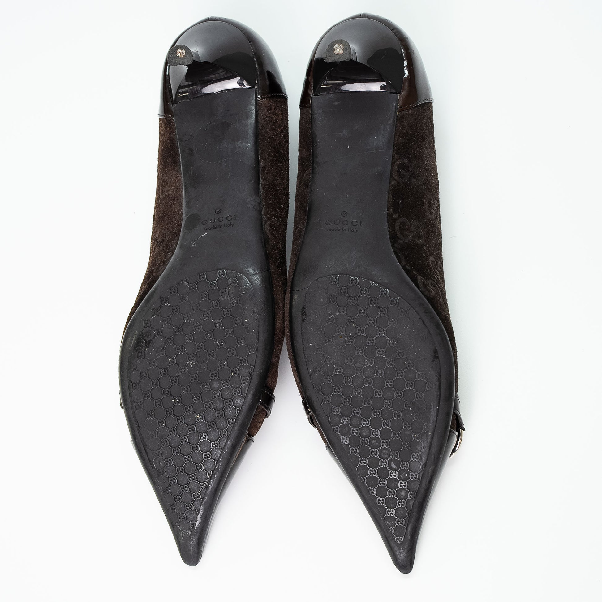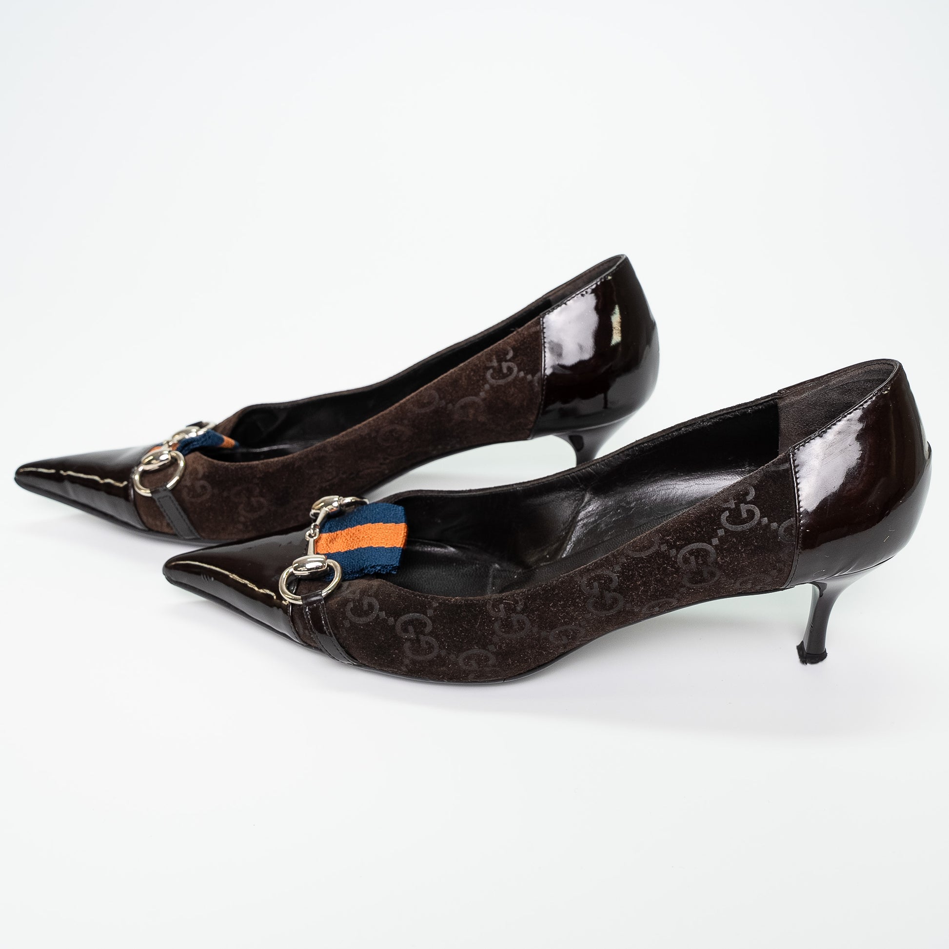 Gucci Brown Monogram Patent Trim Heels Shoes