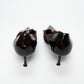 - Dark brown patent leather toe and trim