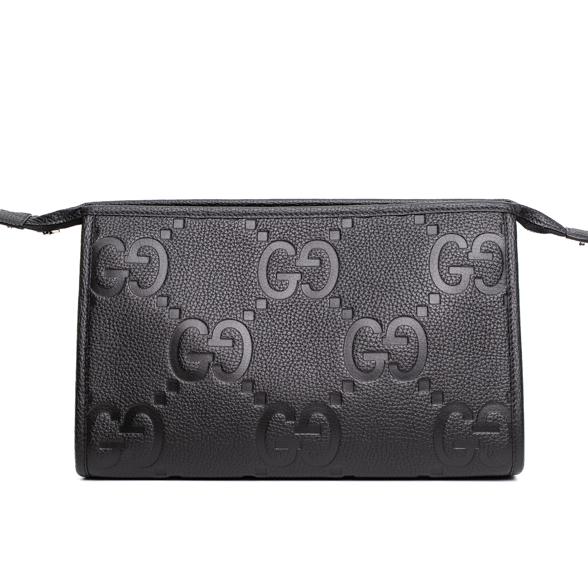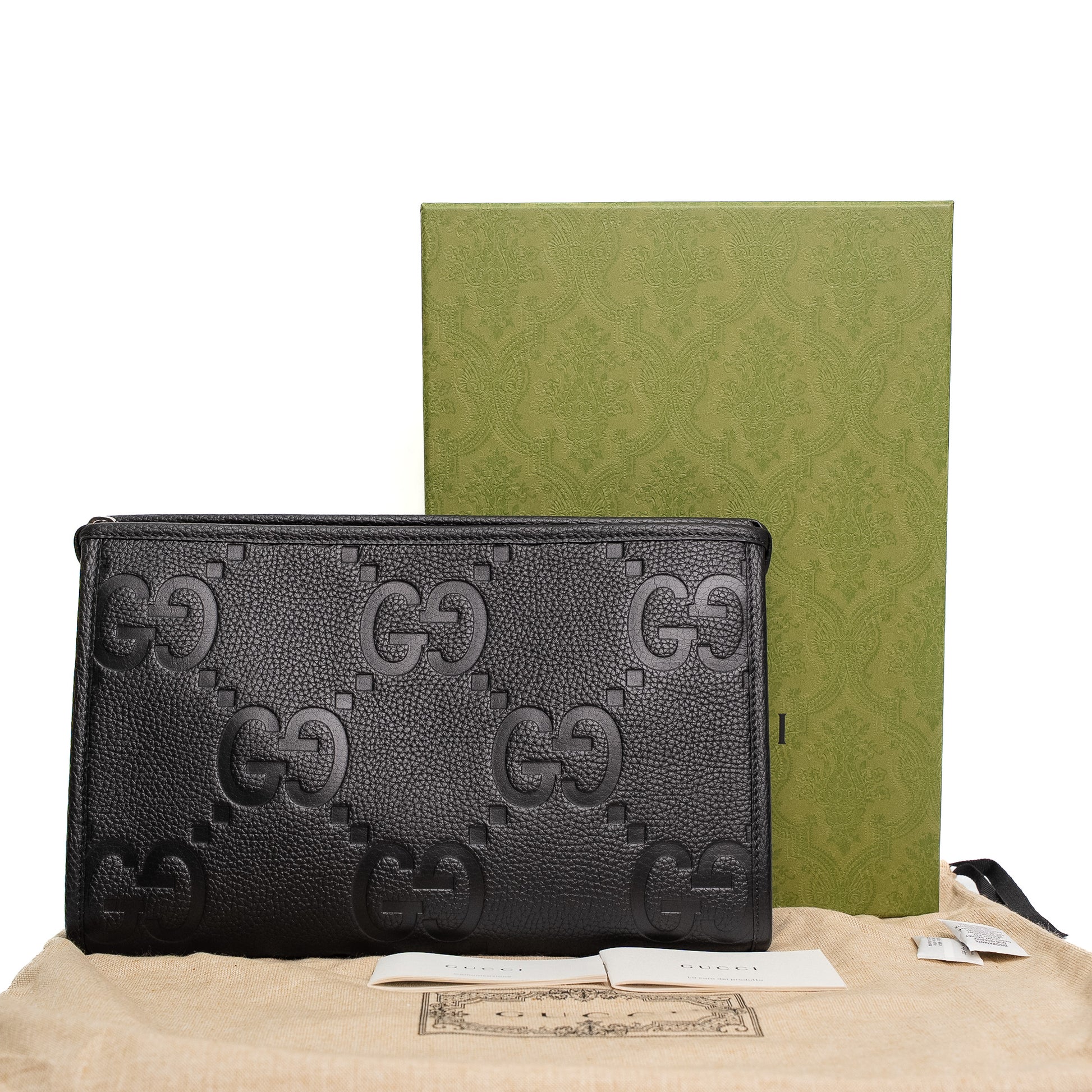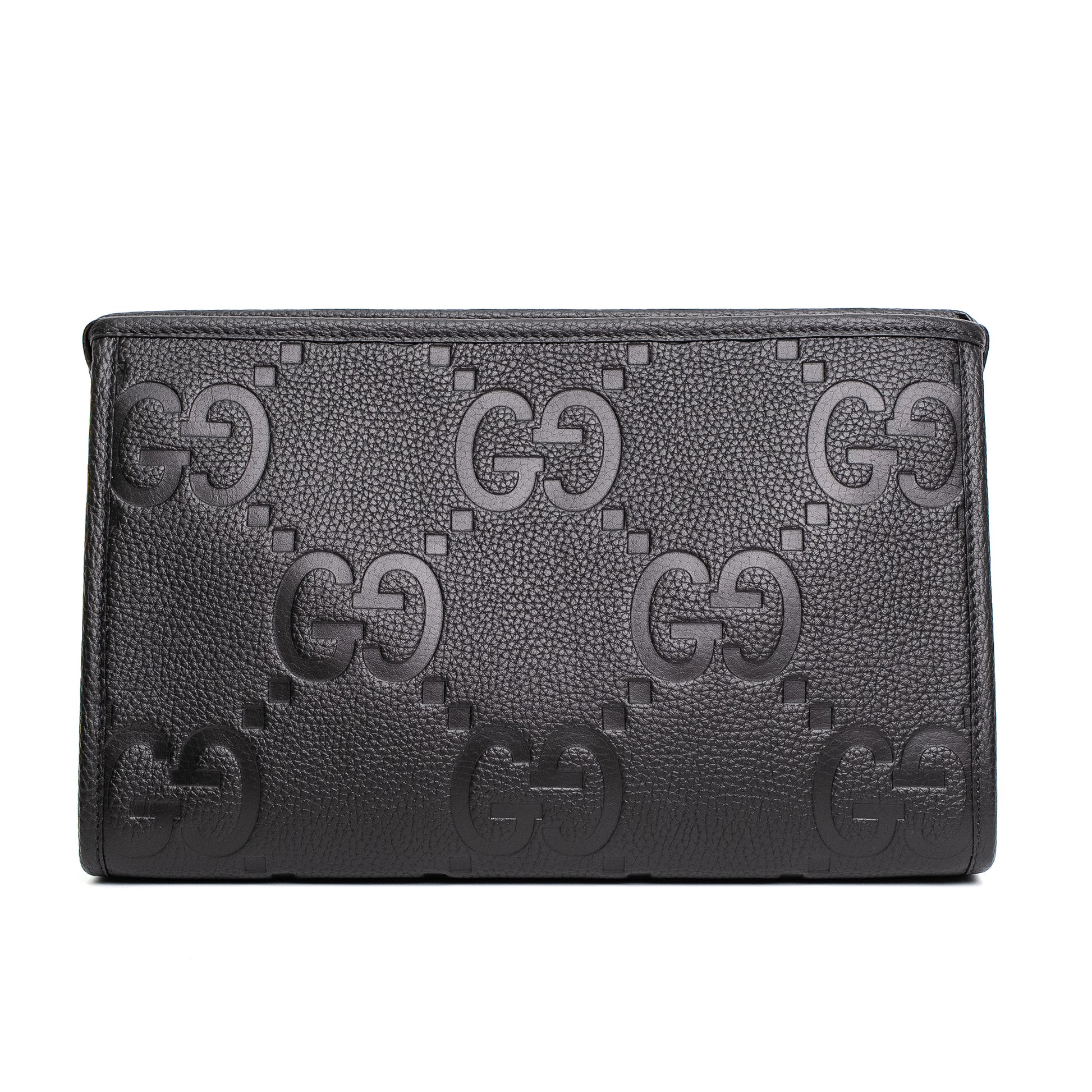 Gucci Jumbo GG Black Leather Zip Clutch Pouch Set