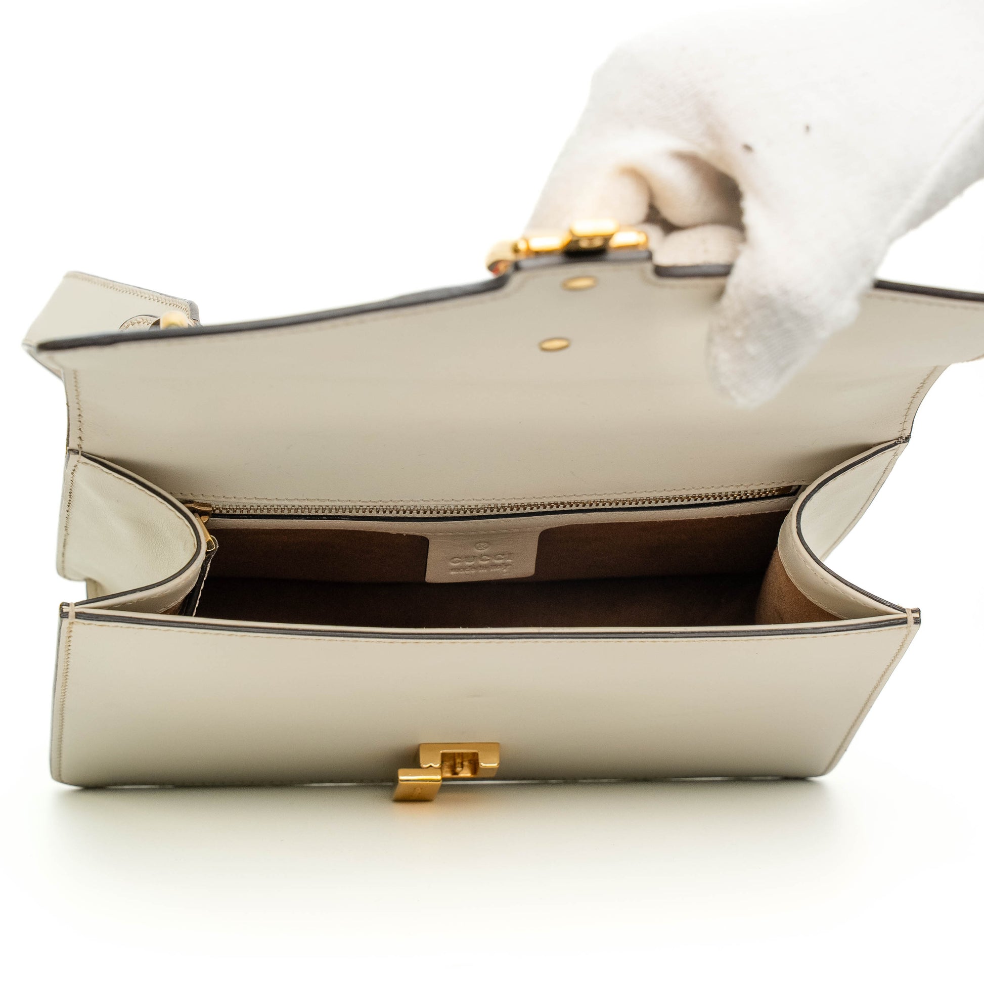 - Hardware: Gold-tone metal