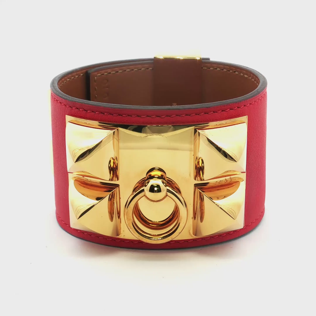 Hermès Collier de Chien Red Leather Gold Bracelet