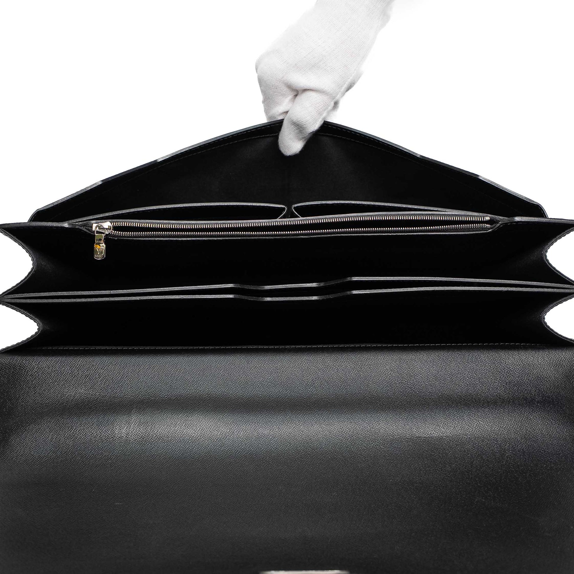 A sophisticated Louis Vuitton briefcase crafted in textured Epi leather, designed for timeless professional elegance.