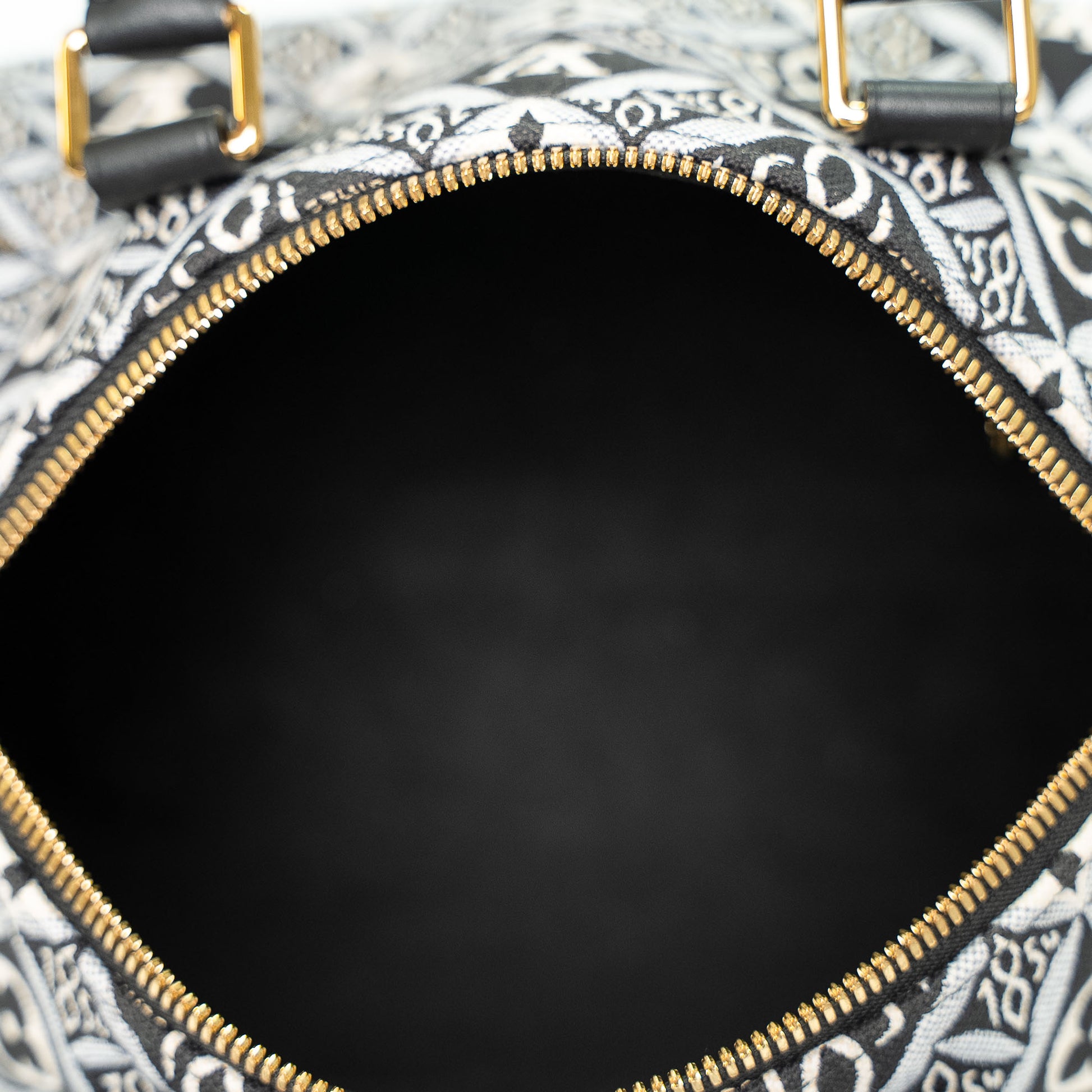 This Louis Vuitton Speedy Bandoulière 25 in Jacquard Since 1854 fabric combines archival motifs with timeless Speedy design.