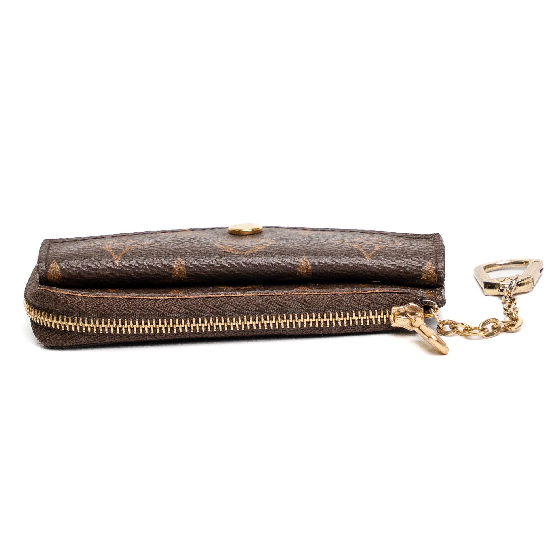 A compact all-in-one Louis Vuitton accessory combining card holder, coin pouch, and bill storage in iconic Monogram canvas.