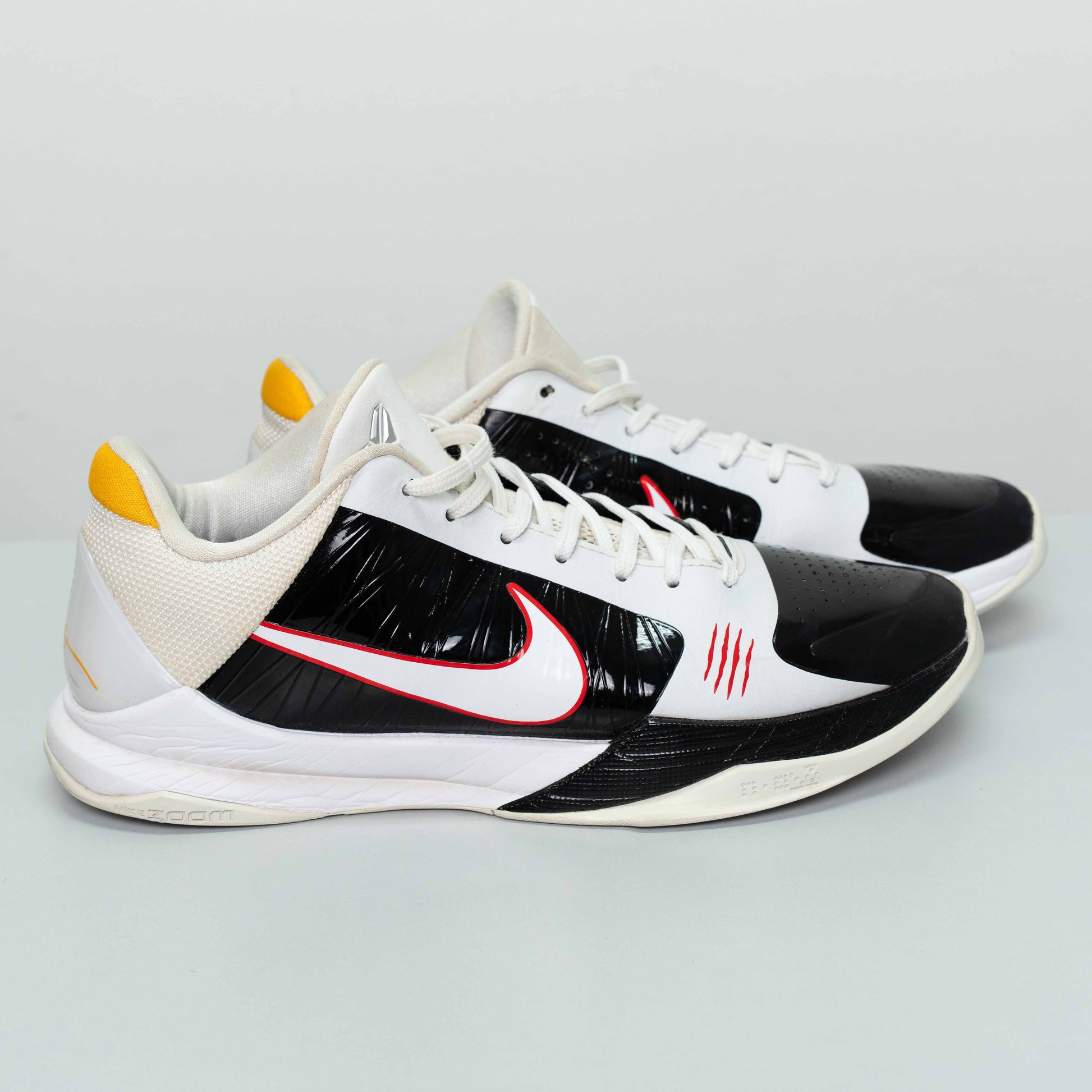 Nike Kobe V Protro sneakers in Practical Grey, White, and Black colorway