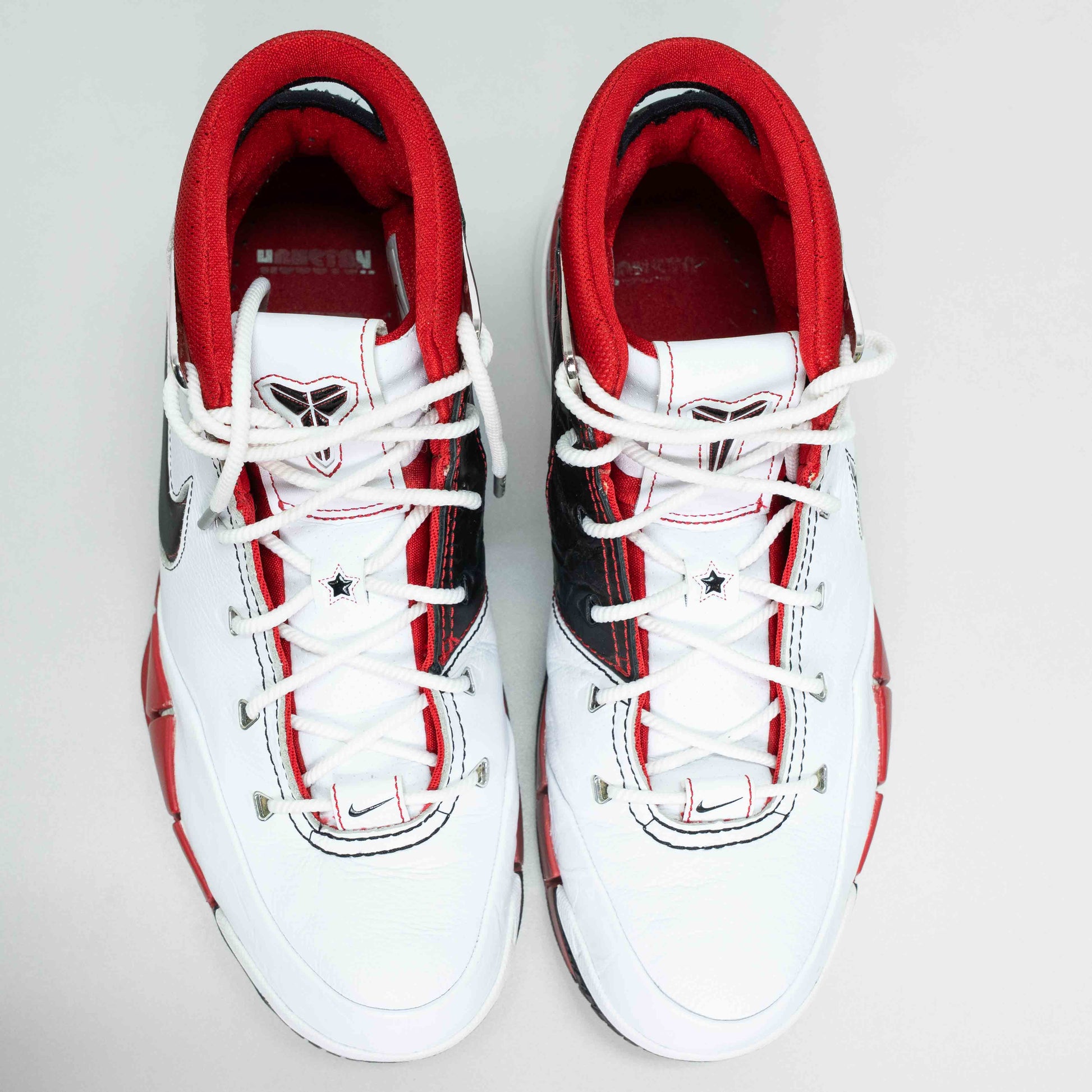 Nike Zoom Kobe 1 Proto performance basketball sneakers in white, black, and varsity red