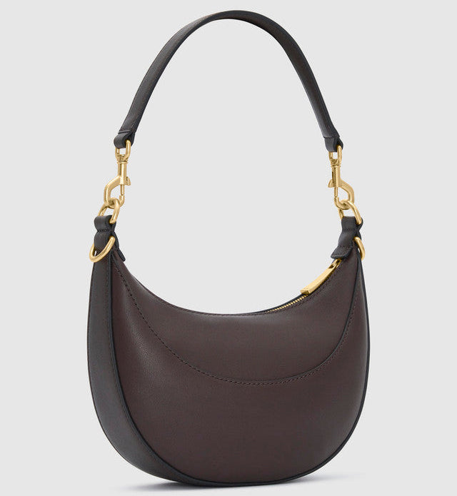 Brand new Oroton Florence Small Shoulder Bag in rich mahogany smooth leather with gold-tone hardware and dual carry options. RRP $429.