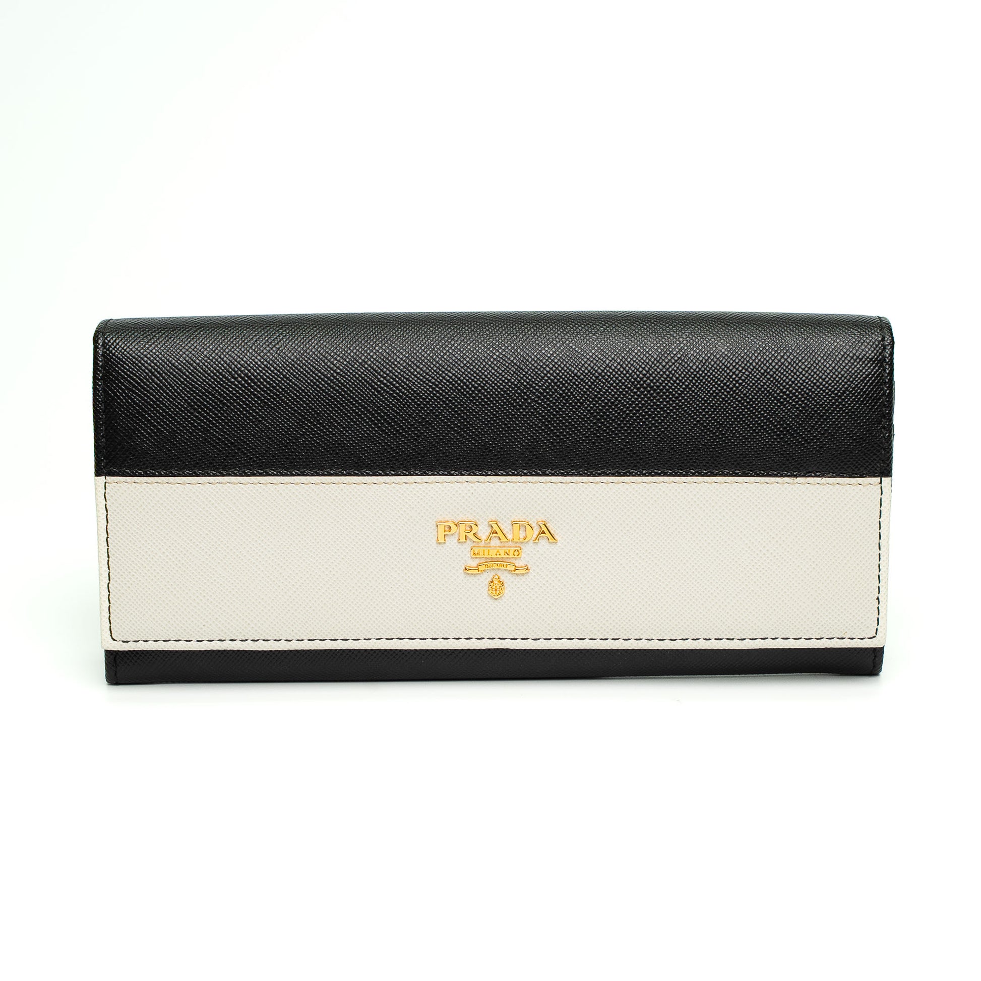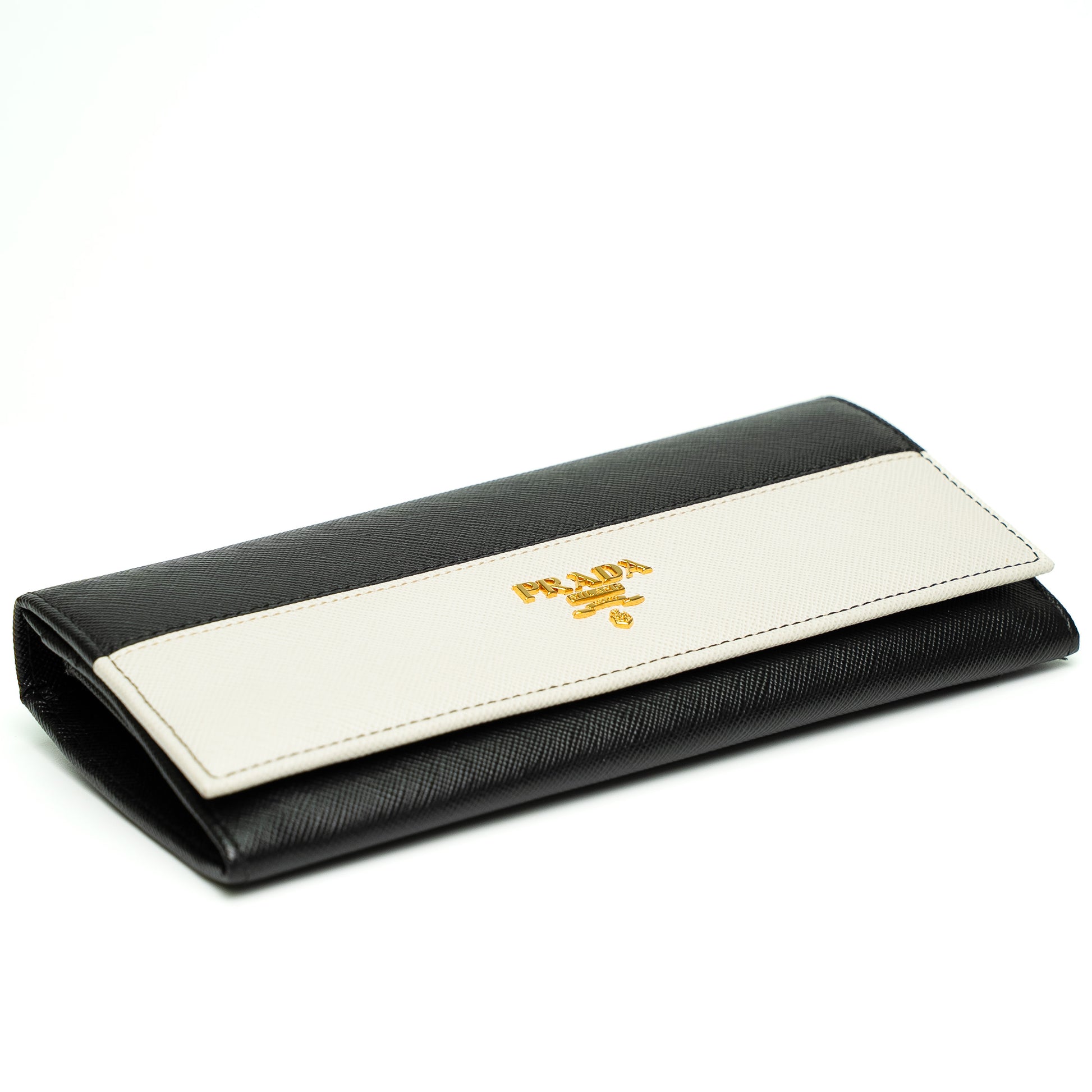 View comparePrada Black & Cream Saffiano Leather Long Wallet