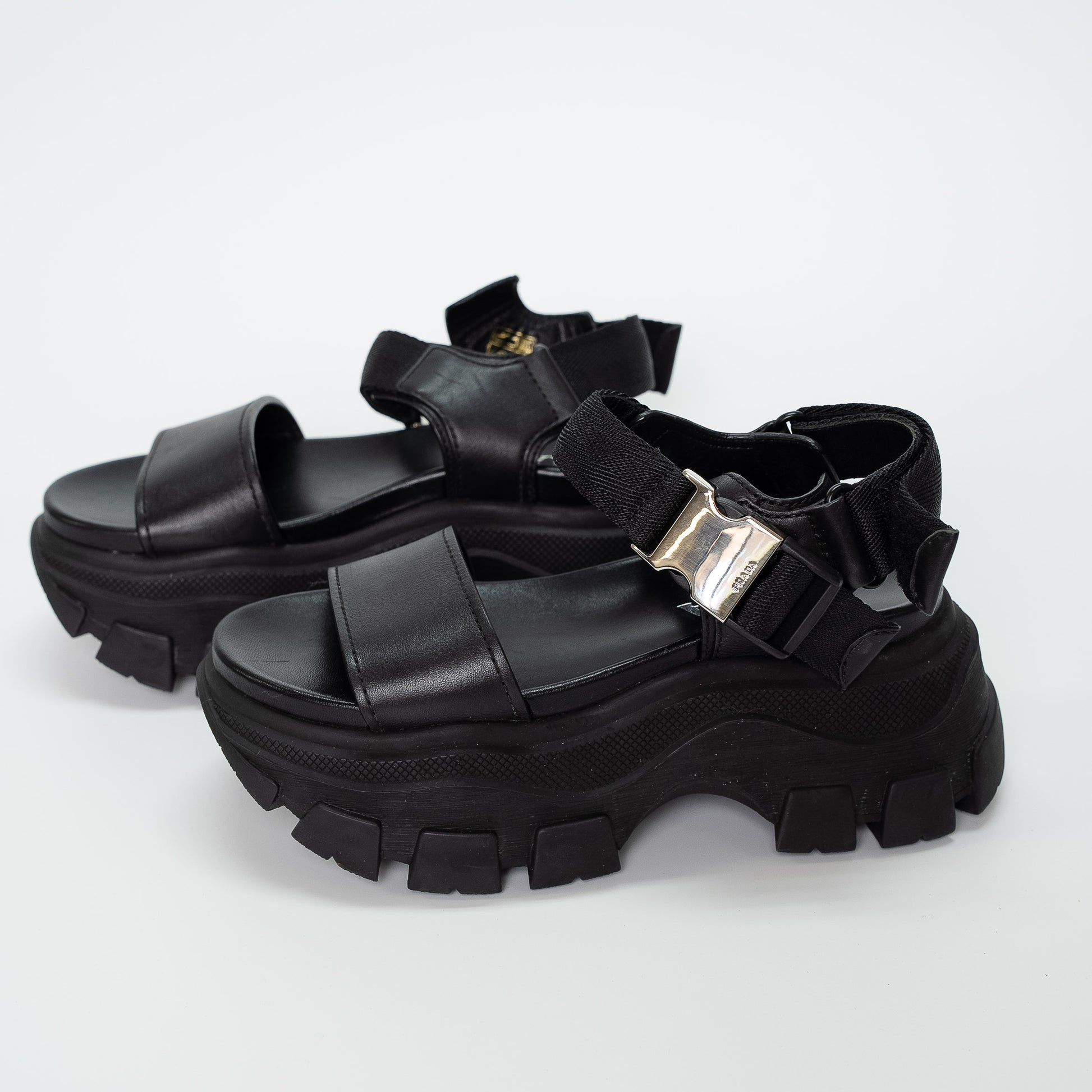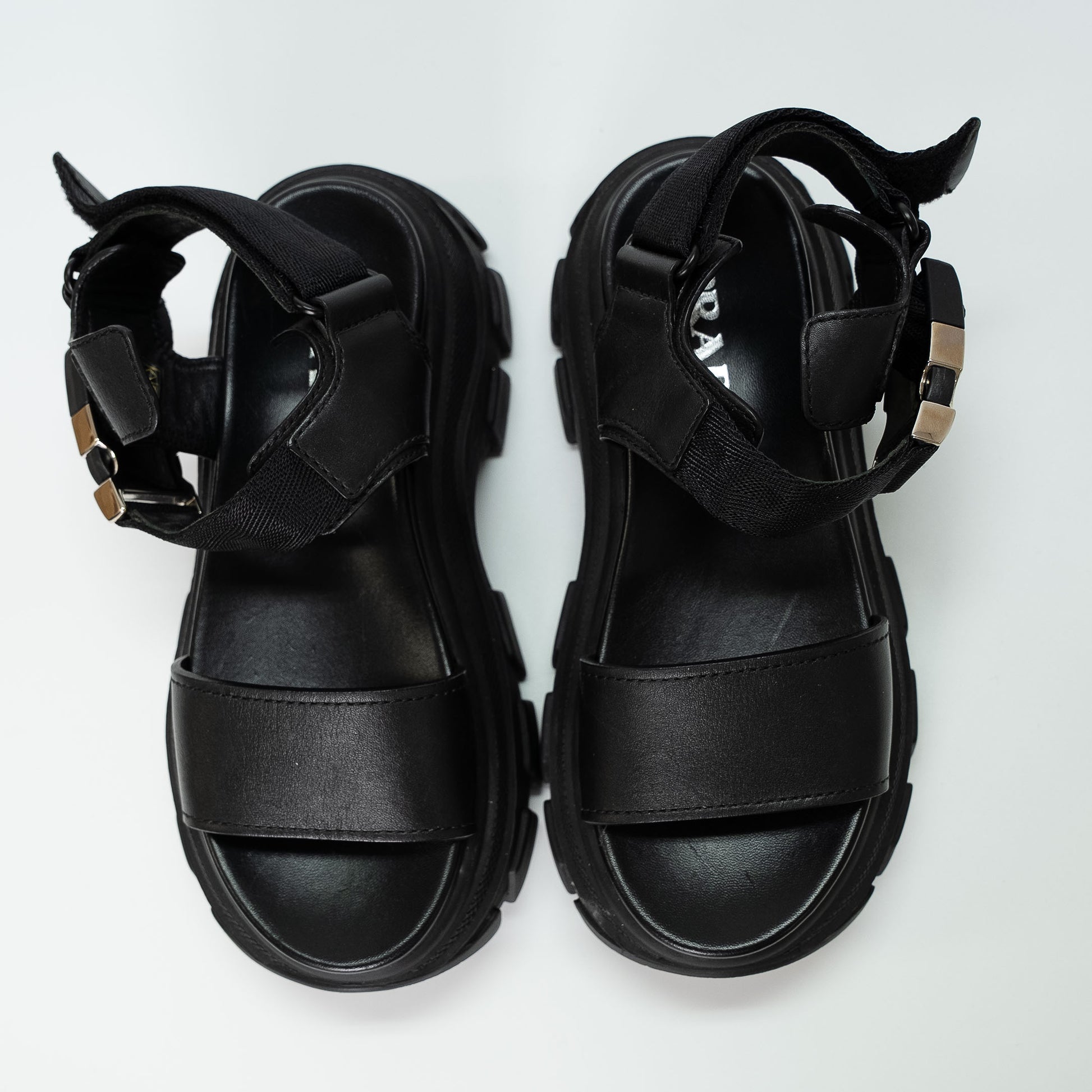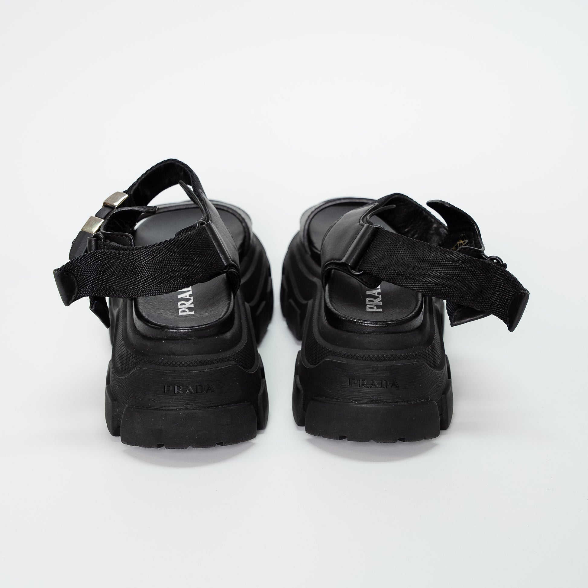 • Chunky platform sandals crafted in smooth black leather with technical fabric straps.
