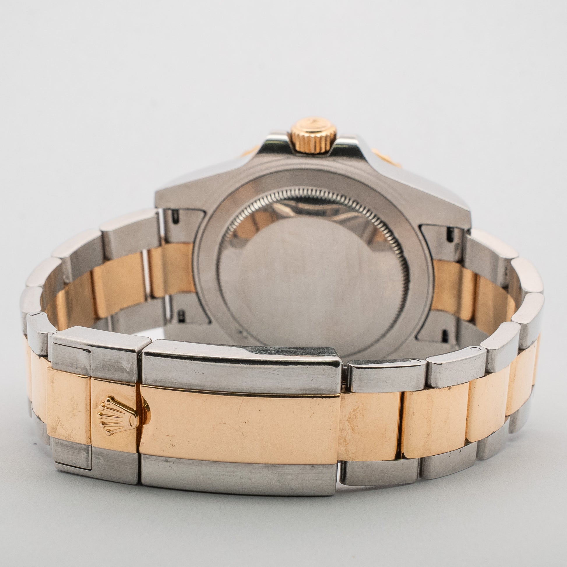 A two-tone GMT-Master II combining Oystersteel and 18k yellow gold, featuring a black dial, ceramic bezel with gold numerals, and classic Oyster bracelet.