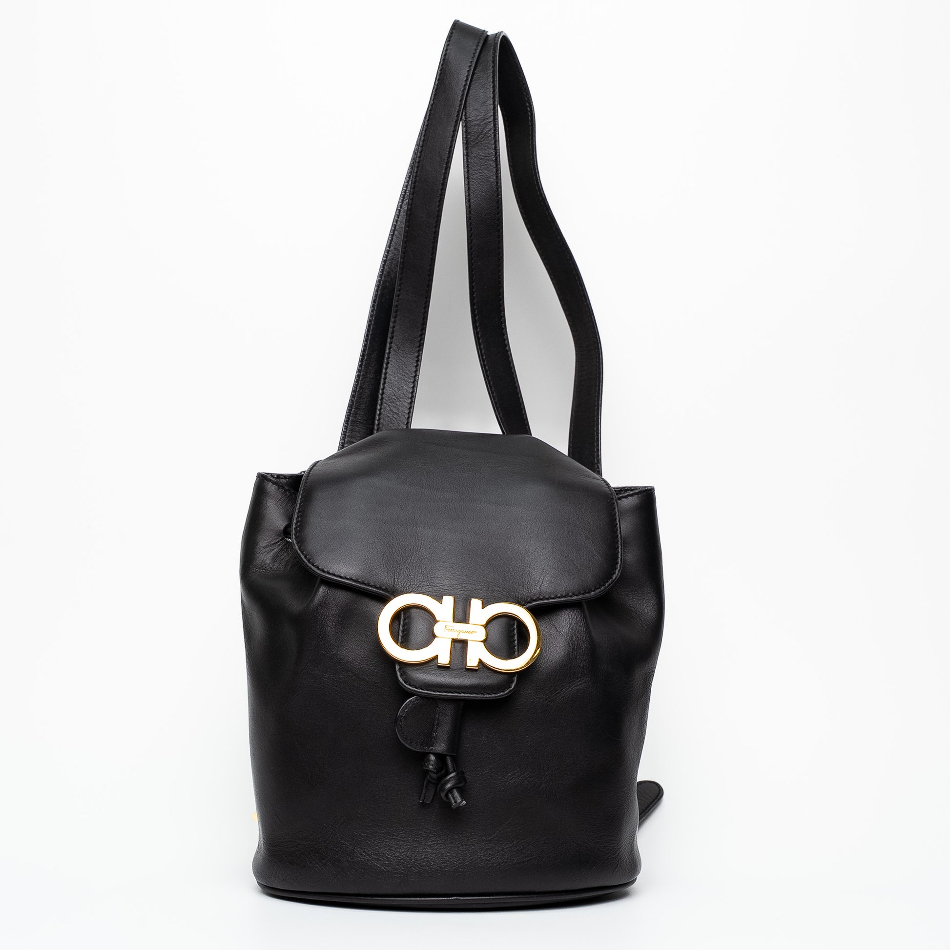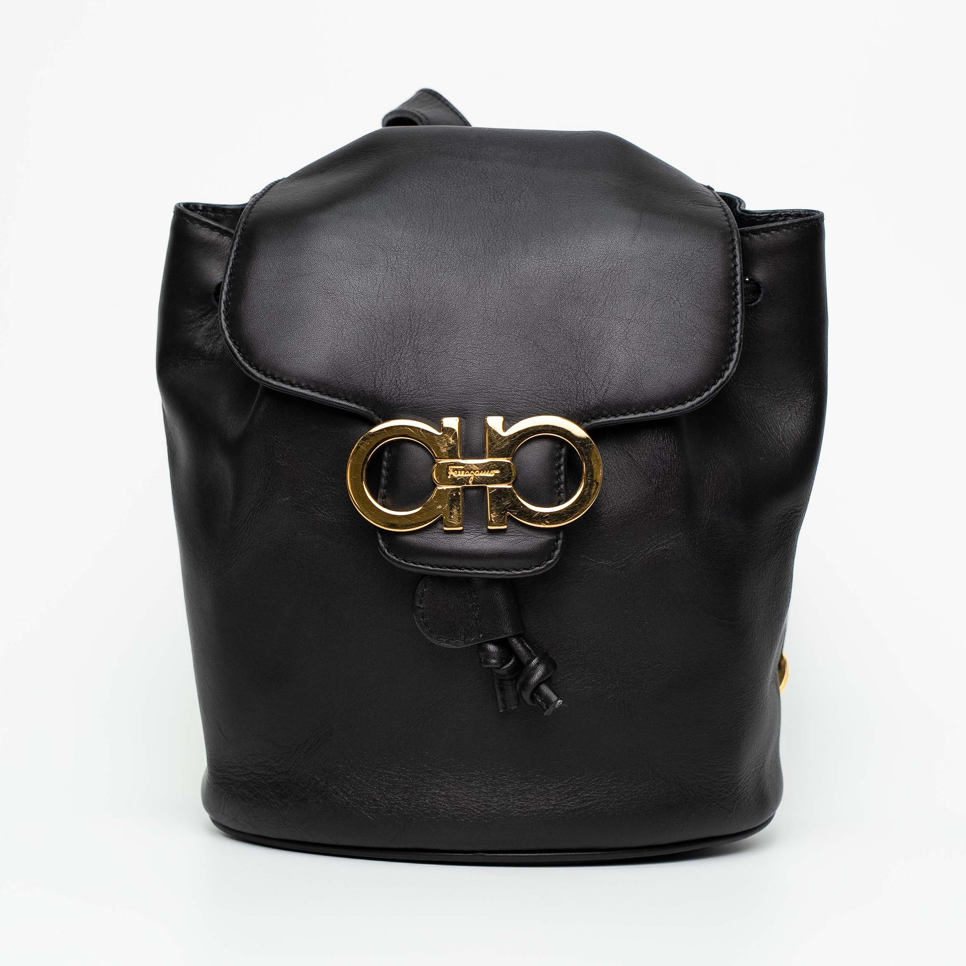 Salvatore Ferragamo Gancini Black Leather Mini Backpack Bag