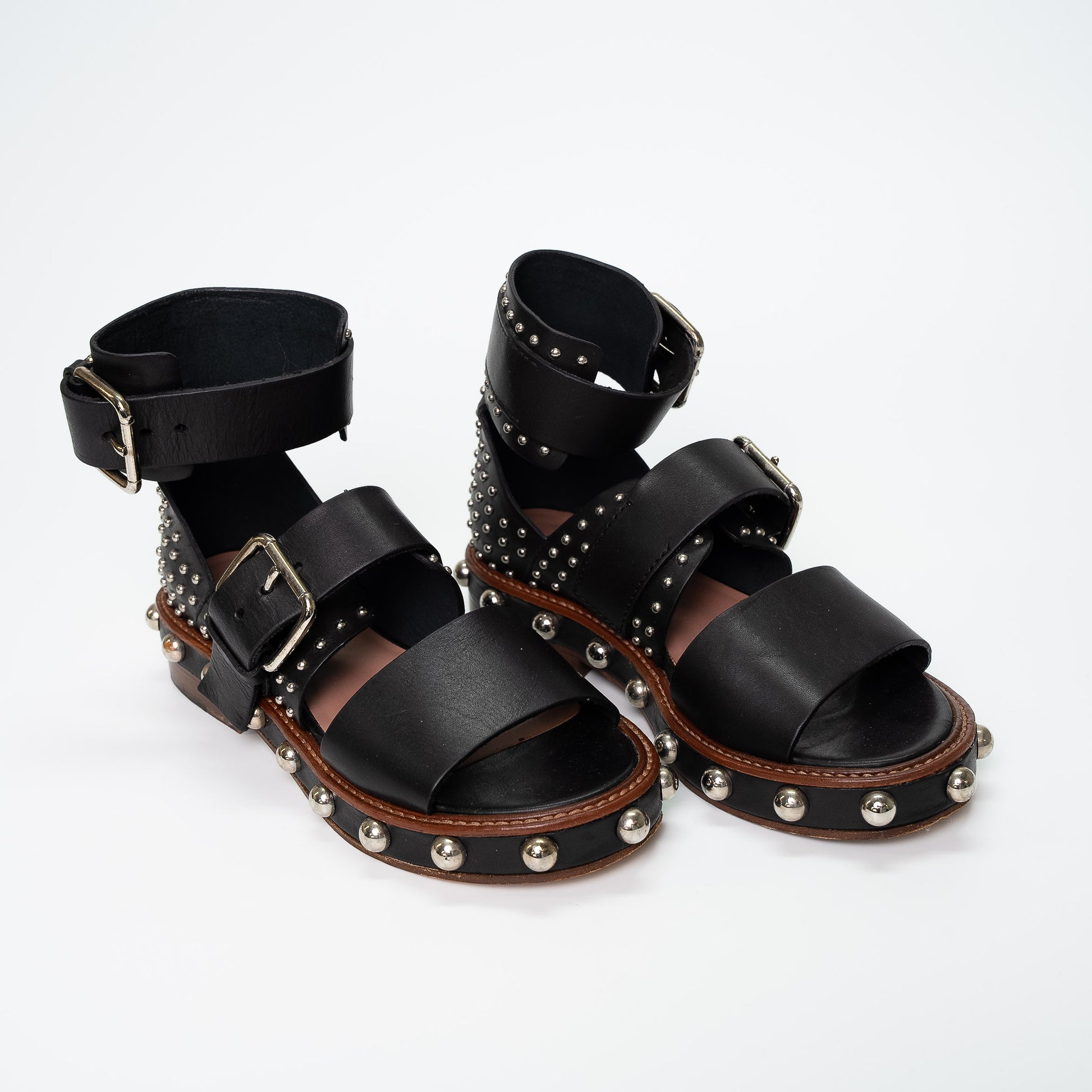 • Crafted in smooth black leather with silver-tone stud embellishments.