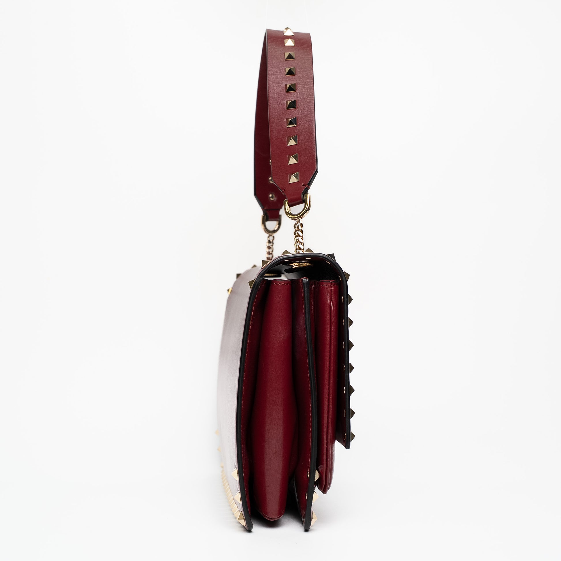 • Strap: Rockstud leather shoulder strap with gold-tone chain links