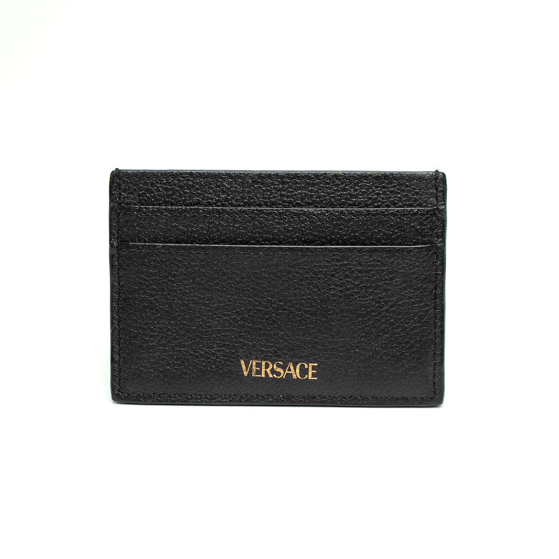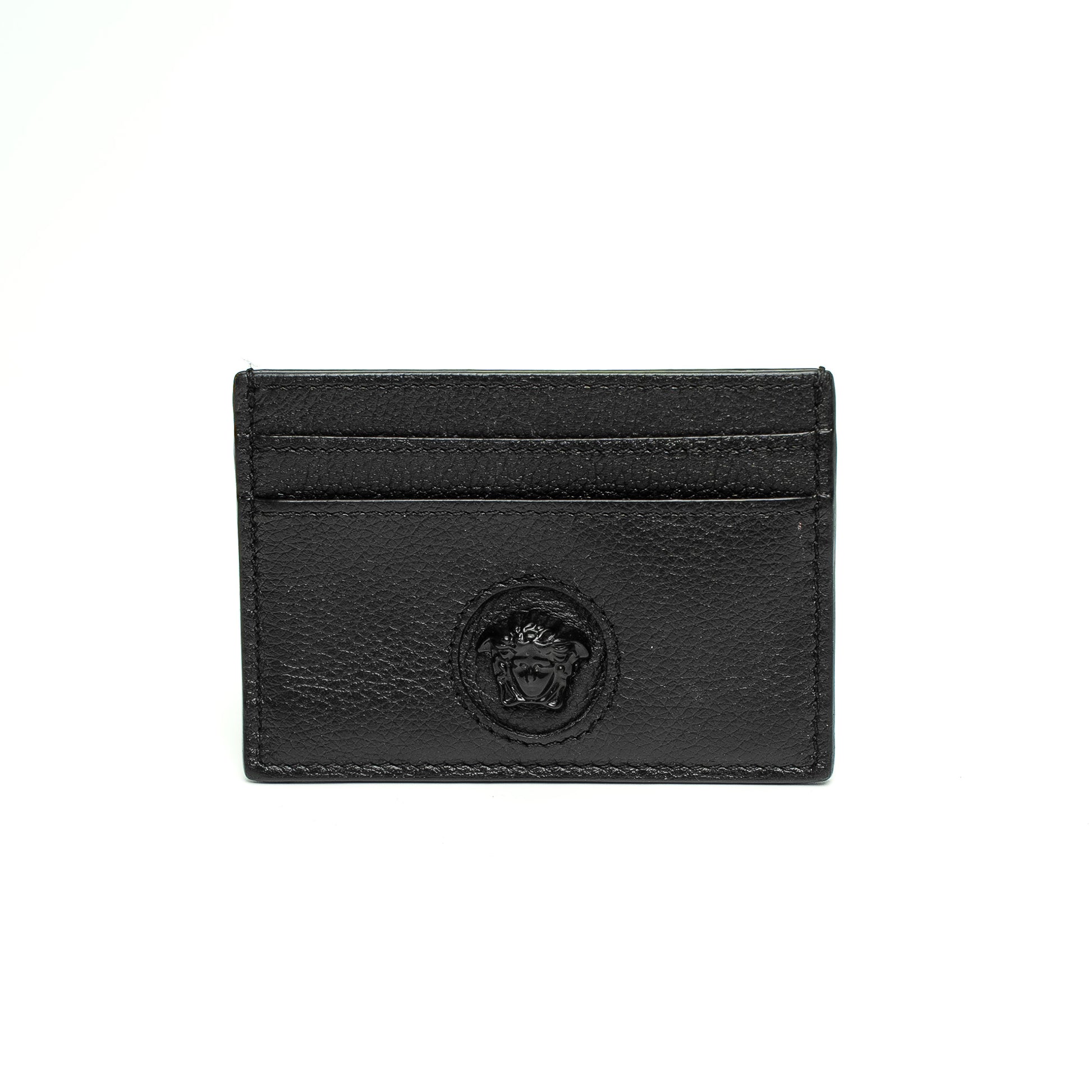 Refined and modern, crafted in grained black leather with embossed Medusa emblem — sleek minimalism meets signature Versace style.