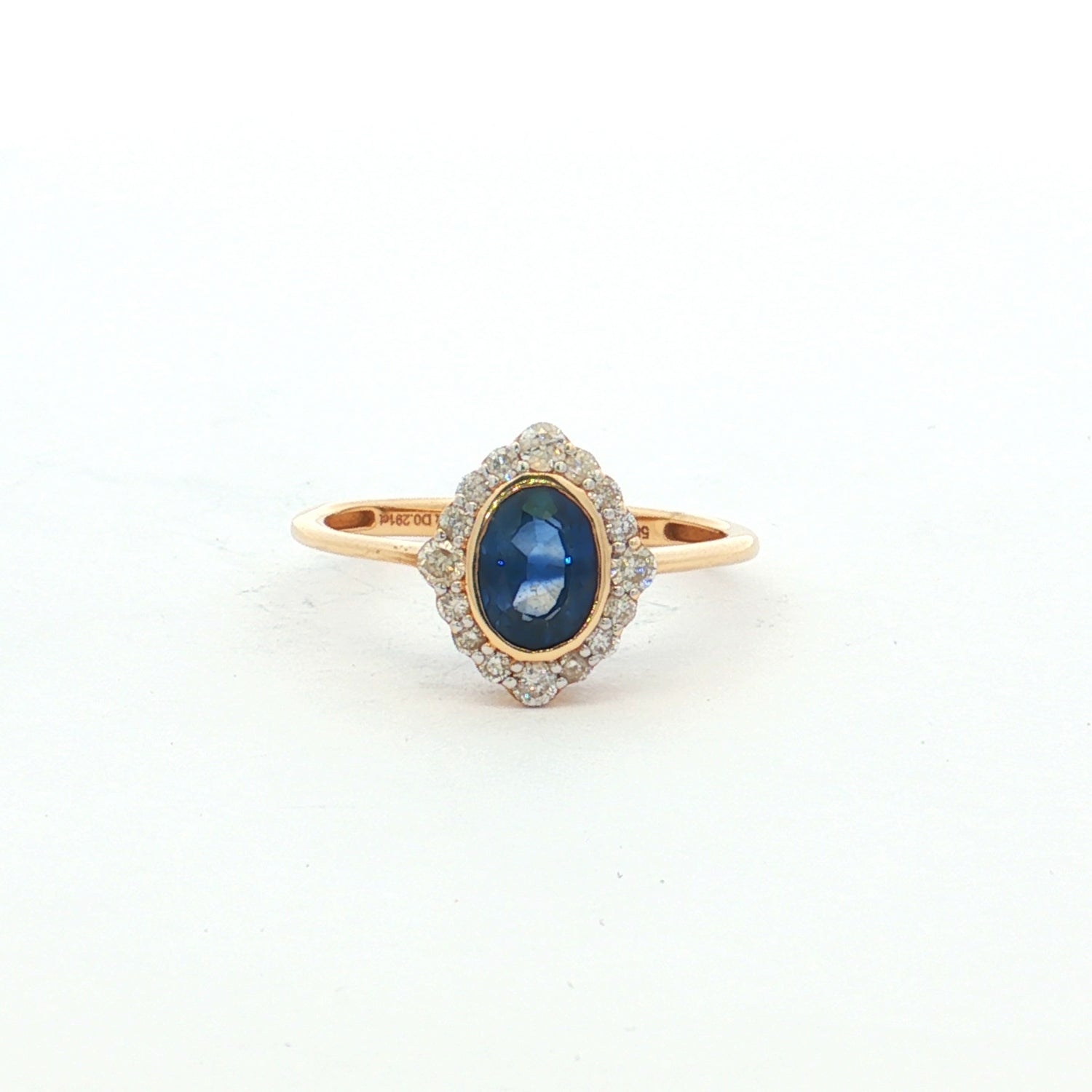 • Setting Style: Bezel-set sapphire with diamond halo surround